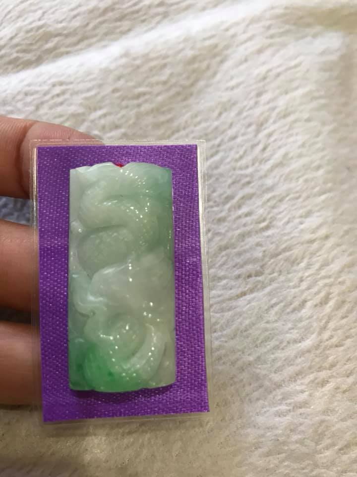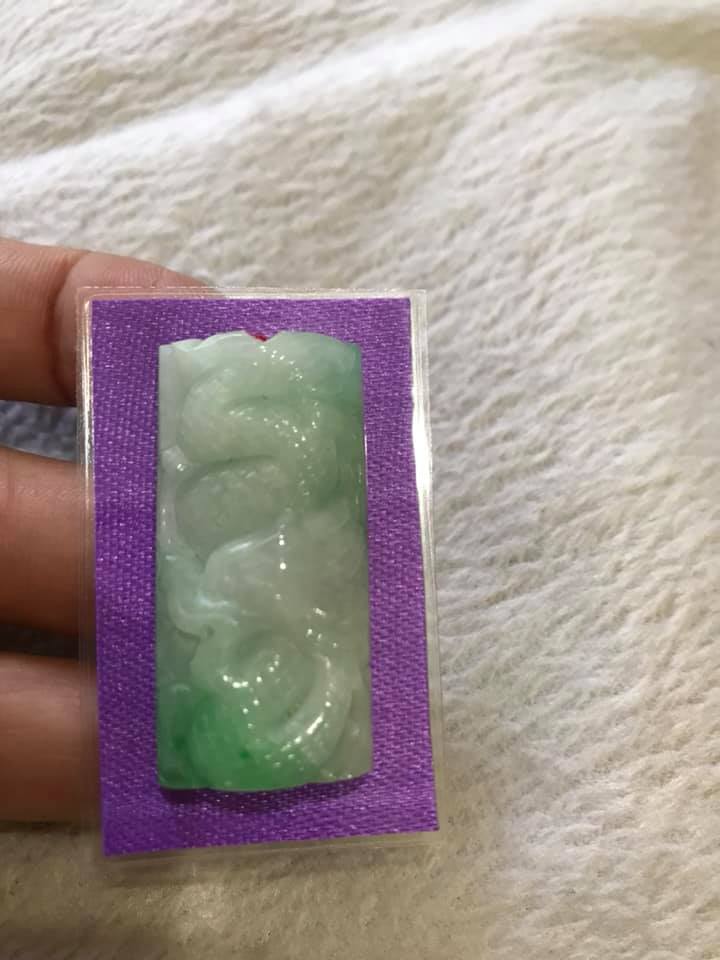 Mặt dây chuyền Rồng Lượn đá cẩm thạch tự nhiên hình chữ nhật xanh đậm đẹp/Gỗ Đá Phong Thủy Sunny Q8