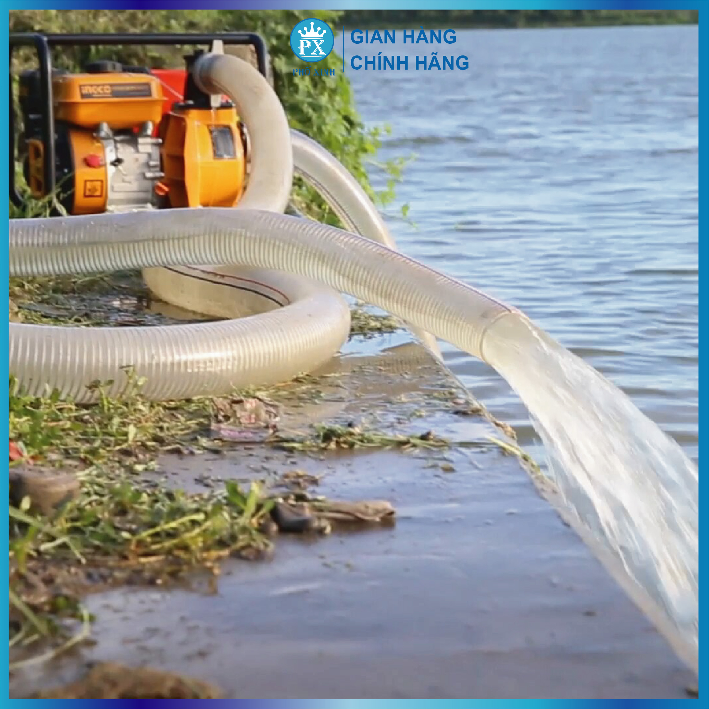 Mua tại TiktokMáy bơm nước dùng xăng INGCO GWP202 động cơ xăng 7.0HP, dung tích xi lanh 208cc, bình nhiên liệu 3,6L, khởi động giật nổ Giới thiệu Máy bơm nước dùng xăng INGCO GWP202 Máy bơm nước dùng xăng INGCO GWP202 là máy qua hoạt động có động cơ giúp bơm nước cho bạn, máy chỉ hoạt động khi sử dụng nguyên liệu xăng, thường áp dụng trong việc tưới tiêu cho cây trồng hay hút nước chống ngập úng ruộng đồng hay ao hồ. Thông số kỹ thuật