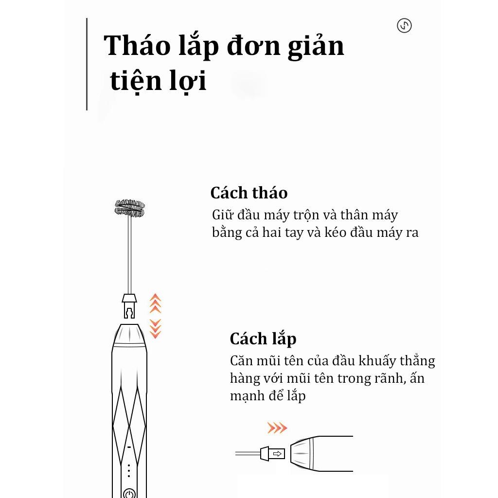 Máy tạo bọt cafe máy đánh trứng mini cầm tay sạc USB 3 tốc độ sử dụng pin sạc cao cấp