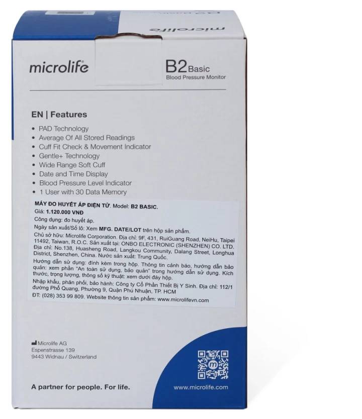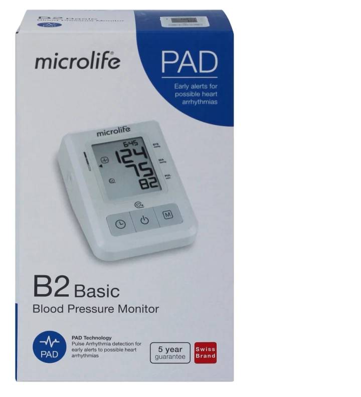 Máy Đo Huyết Áp Bắp Tay Microlife BP B2 Basic, Công Nghệ PAD Phát Hiện Rối Loạn Và Cảnh Báo Nhịp Tim Bất Thường THÔNG TIN SẢN PHẨM: - Sản phẩm: Máy đo huyết