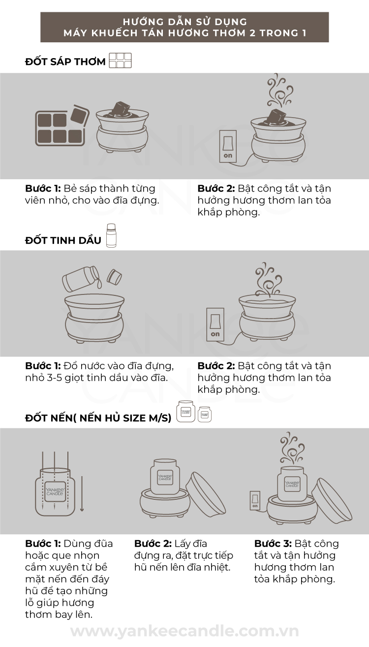 Sản phẩm được giao màu ngẫu nhiên Khi không sử dụng phải tắt nến, phần tinh dầu còn dư còn trên miệng đế sẽ được tiếp tục sử dụng khi cần. HƯỚNG DẪN CHI TIẾT