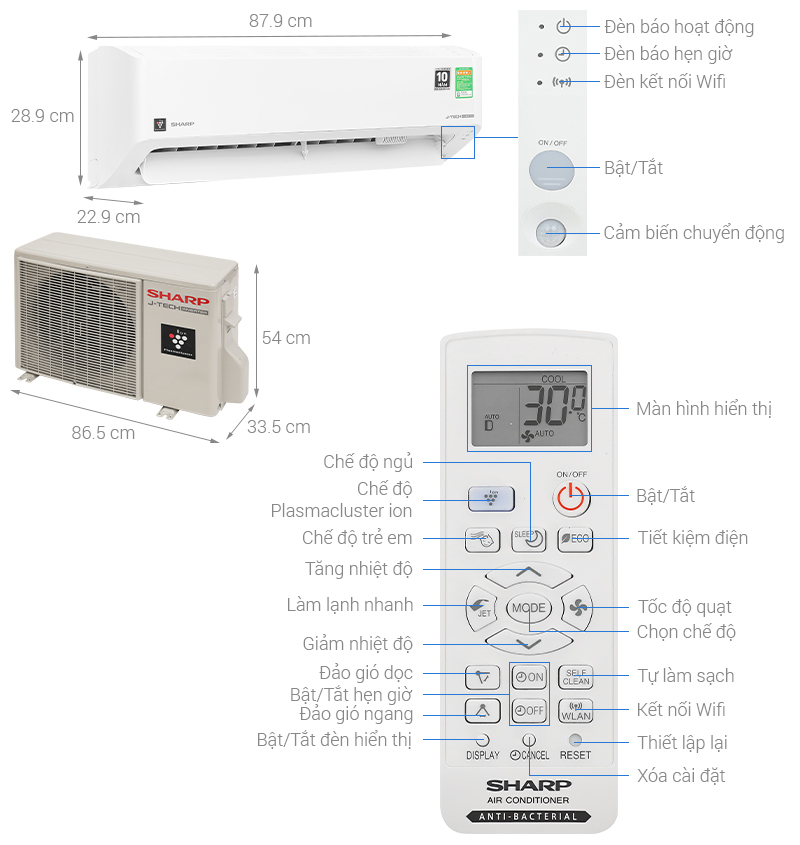 Thông số kỹ thuật Máy lạnh Sharp Inverter 2 HP AH-XP18CHW Thông tin sản phẩm