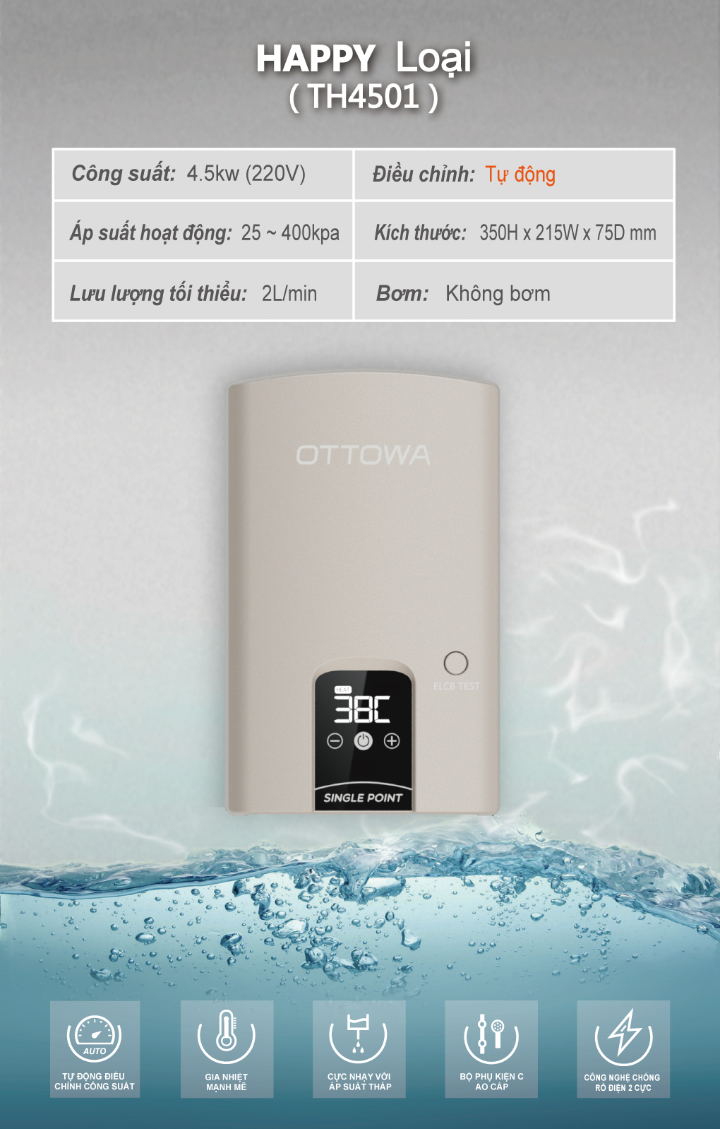 ✨Máy tắm nước nóng OTTOWA TH4501- Hàng chính hãng