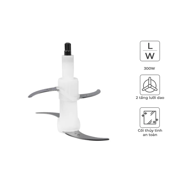 - Công suất 300W, lưỡi dao 2 tầng sắc bén bằng inox 420 bền bỉ, không han gỉ, xay nhuyễn nhanh chóng.