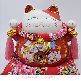 Chất liệu:Mèo thần tài may mắn được chế tác từ gốm sứ với tay nghề thợ thủ công lành nghề Xuất xứ: Kích thước:Chiều dài, chiều rộng và chiều cao: 19 16 18cm Màu sắc:Đỏ Ý nghĩa:Mèo thần tài may mắn không những là vật trang trí vô cùng xinh xắn mà nó còn mang ý nghĩa may mắn, tài lộc đối với gia chủ. Hầu hết nhng người kinh doanh, buôn bán đều đặt một chú mèo vẫy khách Nhật Bản tại cửa hàng, công ty của mình. Cách dùng:Mèo thần tài may mắn nên đặt mèo thần tài hướng mặt và tay về phía cửa mà khách ra vào, chính giữa càng tốt.