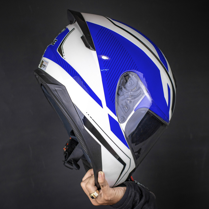 Royal M179 với thiết kế lật hàm sơn vân carbon vô cùng độc đáo giúp ae linh động thay đổi từ một chiếc fullface sang kiểu 3/4 khá dễ dàng. Vỏ bằng nhựa ABS nguyên