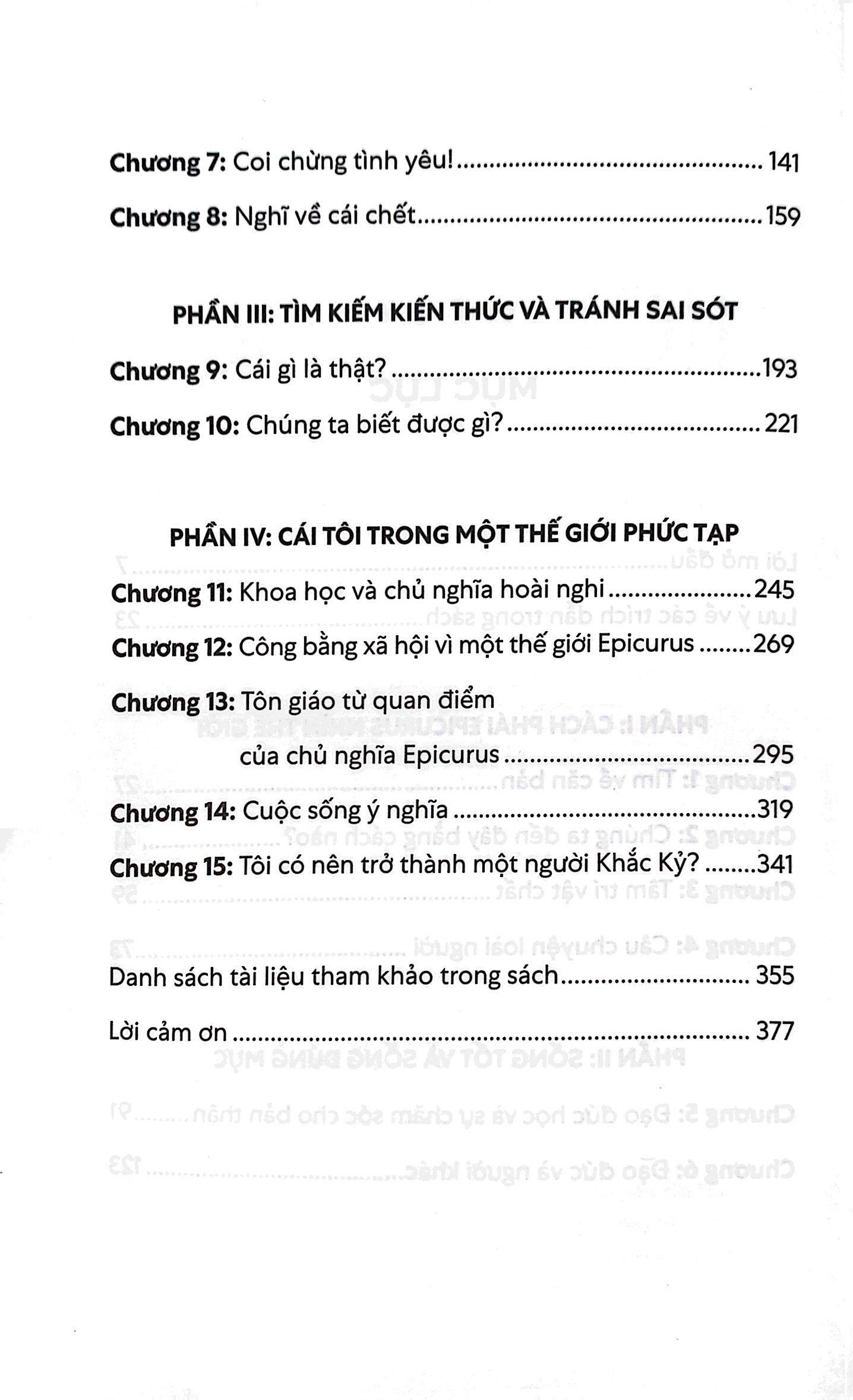 Qua cuốn sách này, giáo sư Catherine Wilson mong muốn giới thiệu lại các học thuyết của Epicurus, kèm với những dẫn chứng gần gũi với thời đại chúng ta, nhằm cung cấp cho độc giả nền tảng về một trường phái triết học vốn vẫn luôn gây tranh cãi và nhiều hiểm lầm kể từ lúc khai sinh đến nay, để từ đó ta có thể áp dụng vào những vấn đề quan trọng của cuộc sống này.