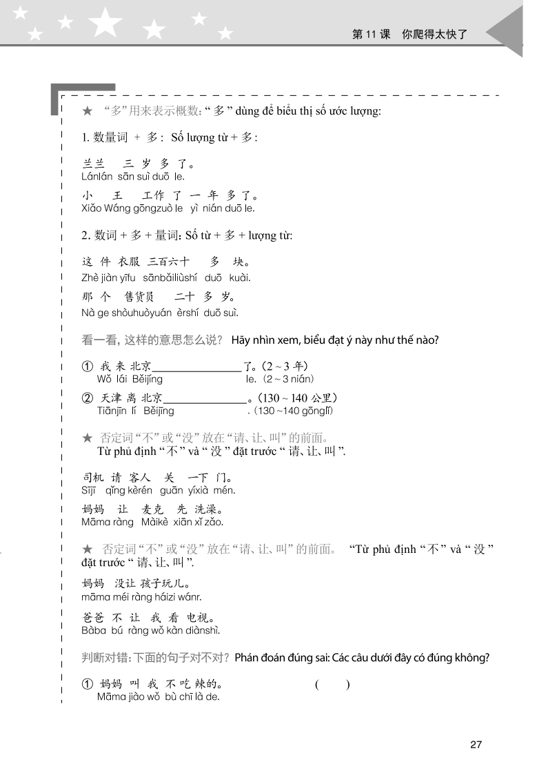 Giáo trình tiếng Trung Giao tiếp tổng hợp dành cho người Việt Nam Cuốn sách Giáo Trình Tiếng Trung Giao Tiếp Tổng Hợp Dành Cho Người Việt Nam có 15 bài, mỗi bài gồm: