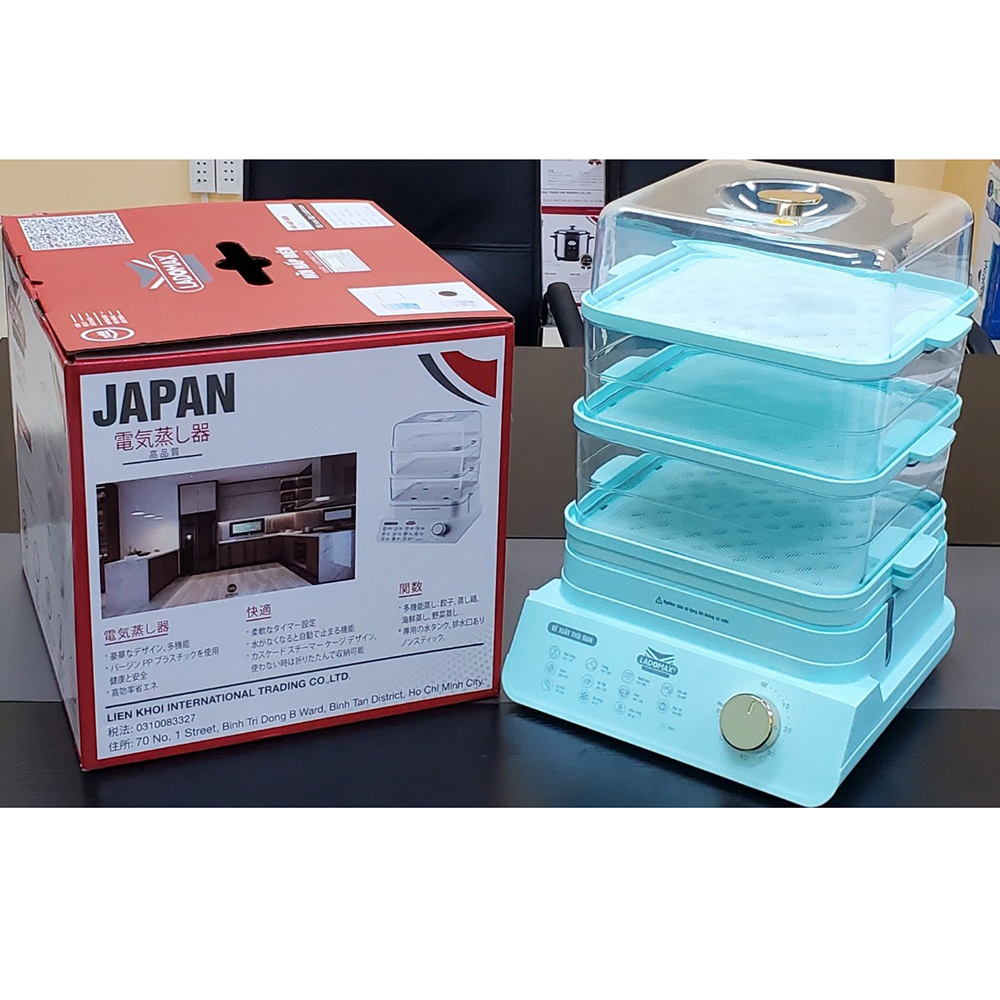 THÔNG SỐ KỸ THUẬT - Điện áp: 220V - 50Hz - Công suất: 800W - Dung tích: 18L ( 3 tầng) - Thiết kế tầng hấp: 3 tầng có thể tháo