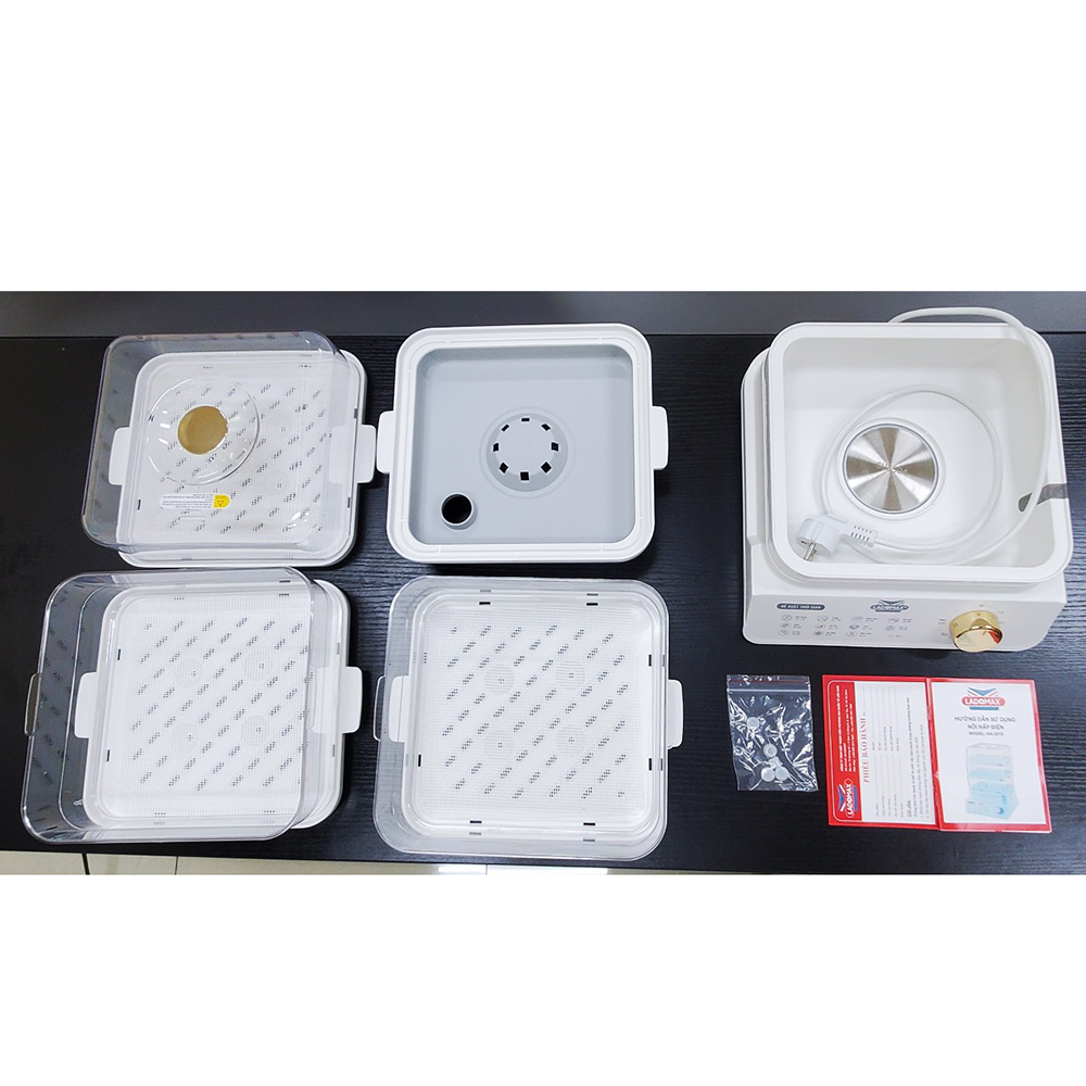 Mua tại TiktokTHÔNG SỐ KỸ THUẬT - Điện áp: 220V - 50Hz - Công suất: 800W - Dung tích: 18L ( 3 tầng) - Thiết kế tầng hấp: 3 tầng có thể tháo rời - Chất liệu: Nhựa PP, PC cao cấp, an toàn với sức khỏe - Điều khiển: Cơ (Núm vặn chỉnh thời gian) - Thời gian hấp tối đa: 60 phút - Đề xuất thời gian hấp với thức ăn: In trên sản phẩm - Khuyến cáo: Không chỉnh thời gian khi chưa đổ nước vào nồi - Thương hiệu: Ladomax