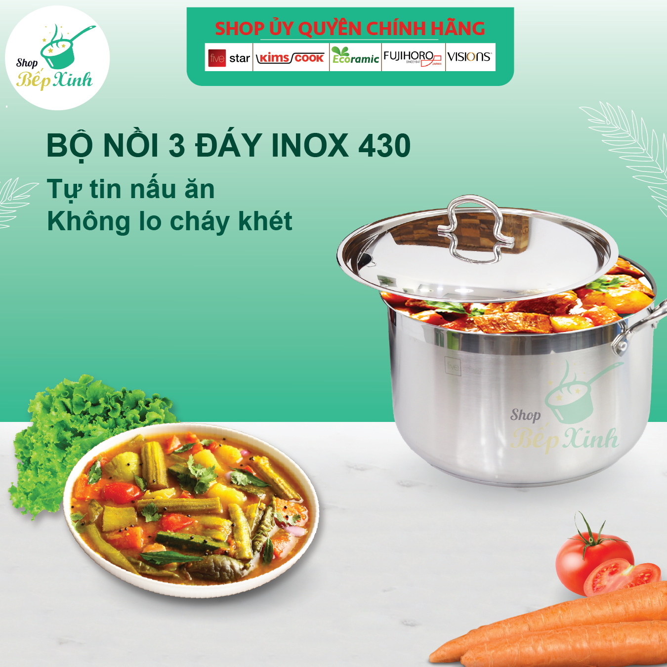 Bộ nồi inox 3 món đáy từ dùng mọi loại bếp