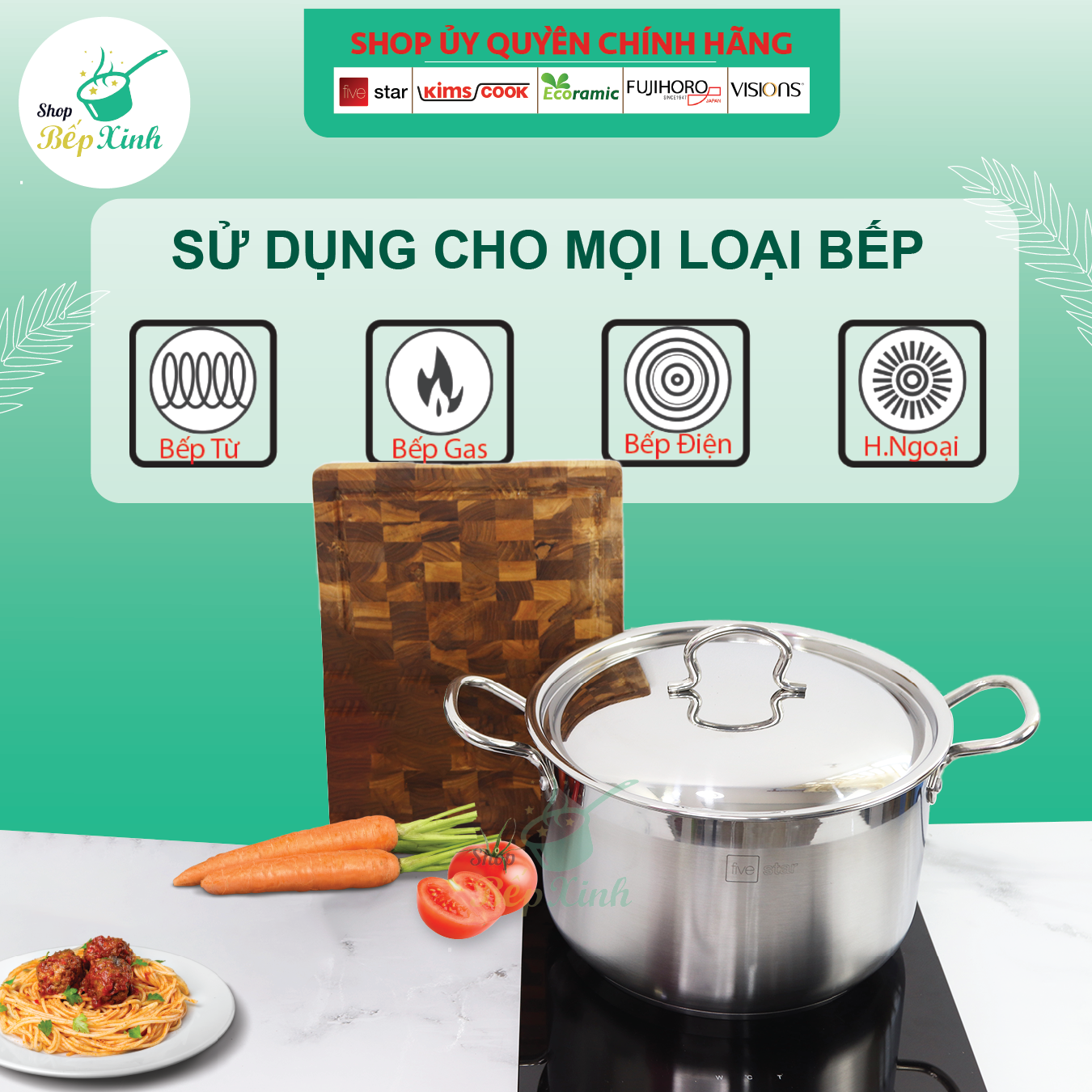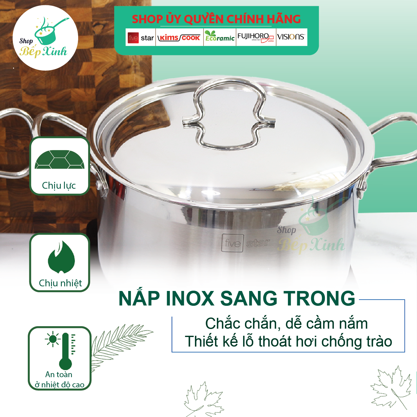 ✨Nồi inox Fivestar 3 đáy nắp inox tặng 5 muỗng inox ( 30cm ) , dùng được bếp từ , hồng ngoại , gas