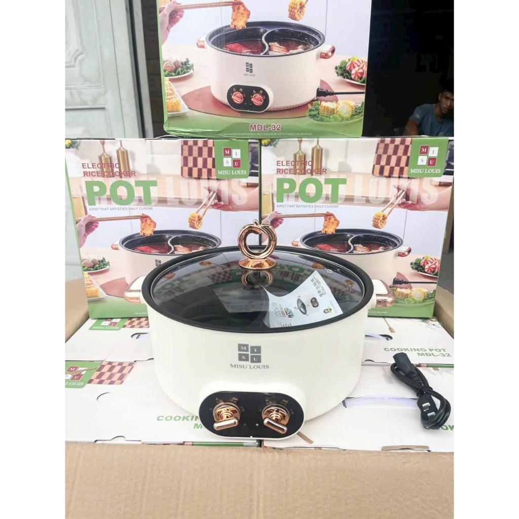 Nồi Lẩu 2 Ngăn và lẩu kèm hấp Misu Loui Nấu Lẩu Chua Cay Tiện Lợi - Công suất : 1600W - Đường kính nồi 34cm - Chiều sâu: 14cm + Nồi điện đa năng