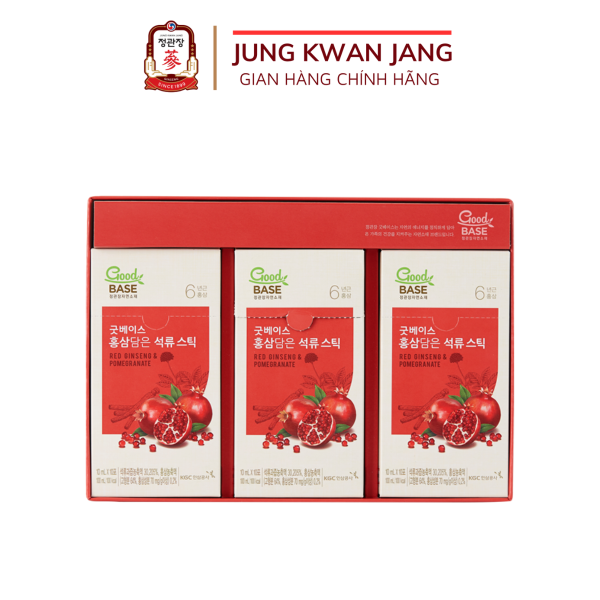 - Tên sản phẩm: Nước Hồng Sâm Hàn Quốc Goodbase Tinh Chất Lựu Đỏ KGC Jung Kwan Jang (10ml x 10 gói)