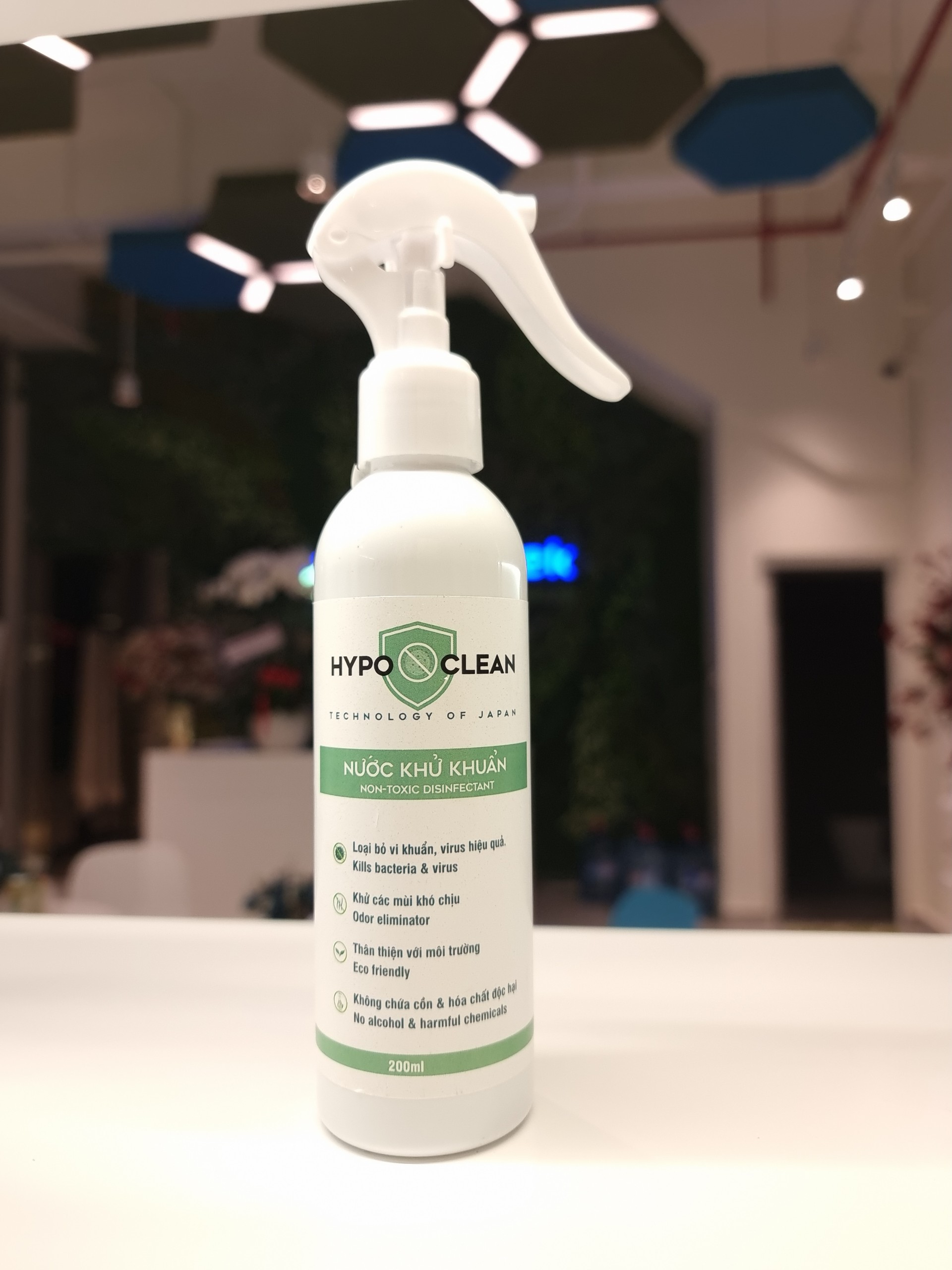 • [ ] Nước khử khuẩn HYPO CLEAN là dung dịch Acid Hypochlorous (HOCI) nồng độ 100ppm, được sản xuất bởi công nghệ diện phân cải tiến của Kanazawa - Nhật Bản từ nước, muối tỉnh khiết, không chứa cồn và các hóa chất độc hại. Dùng dịch Acid Hypochlorous (HOCI) đã được EPA (Cục Bảo vệ Môi trường Hoa Kỳ), NITE (Viện Công nghệ và Đánh giá quốc gia ở Nhật Bản) chứng nhận có khả năng hạn chế virus SARS-CoV-2 hiệu quả; được FDA (Cục quản lý Thực phẩm và Dược phẩm Hoa Kỳ) cho phép sử dụng trực tiếp trên thực phẩm như rau củ, thịt, hải sản.