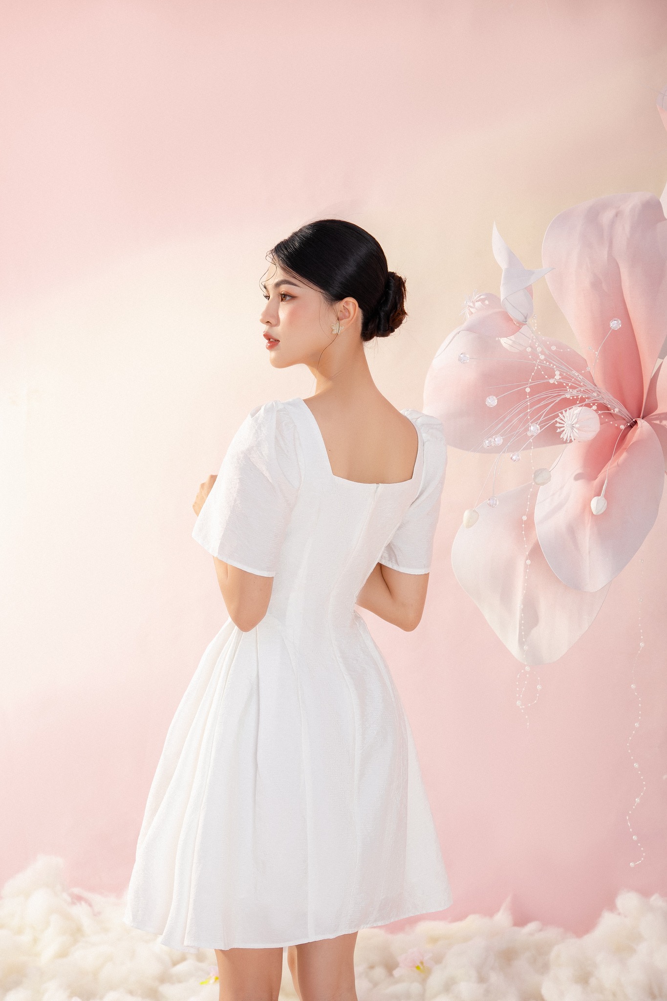 ღ THÔNG TIN SẢN PHẨM:   Tên sản phẩm: Đầm trắng cột nơ   Thông số size: S, M, L, XL   Chất liệu: Chất xốp kim cương   Chiều dài Đầm: Size S: 100