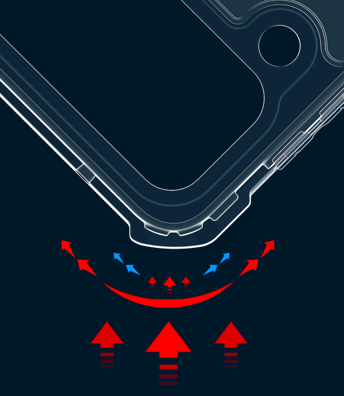 Khung viền cứng cáp chống sốc hiệu quả với 4 góc bo được thiết kế như 4 túi khí giảm sốc kho máy khi rơi rớt