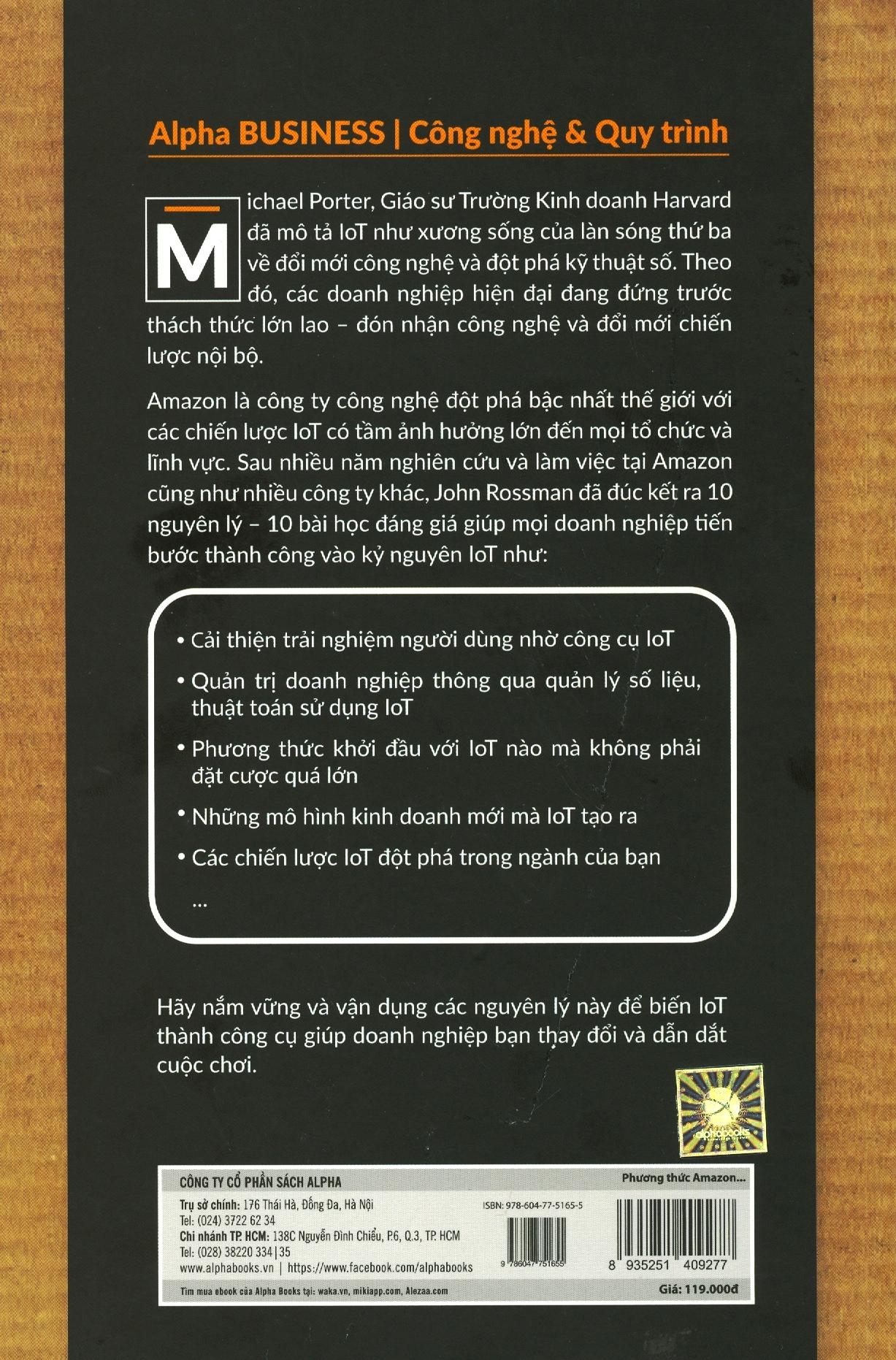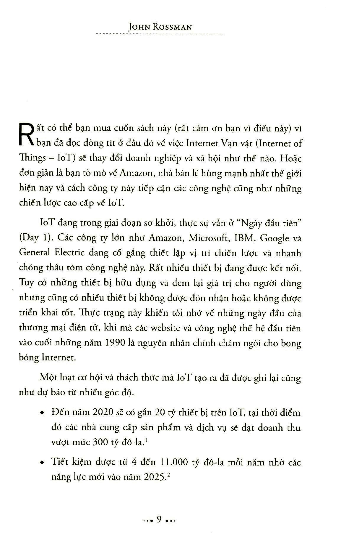 Amazon là công ty công nghệ đột phá bậc nhất thế giới với các chiến lược IoT có tầm ảnh hưởng lớn đến mọi tổ chức và lĩnh vực. Sau nhiều năm nghiên cứu và làm việc tại Amazon cũng như nhiều công ty khác, John Rossman đã đúc kết ra 10 nguyên lý – 10 bài học đáng giá giúp mọi doanh nghiệp tiến bước thành công vào kỷ nguyên IoT.