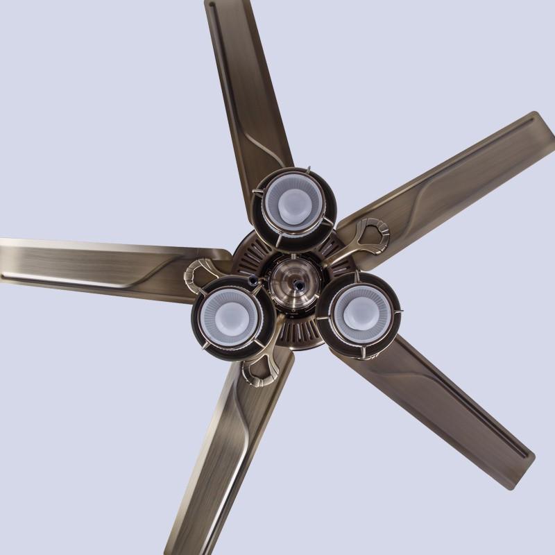 Màu sắc :Đồng Xanh Sải cánh : 1320mm Động cơ: 153x18mm Công suất : 80W AC Chất liệu cánh : 5 cánh thép Chao đèn: 3 đèn Ánh sáng : có ĐỘNG CƠ ĐỒNG 100%