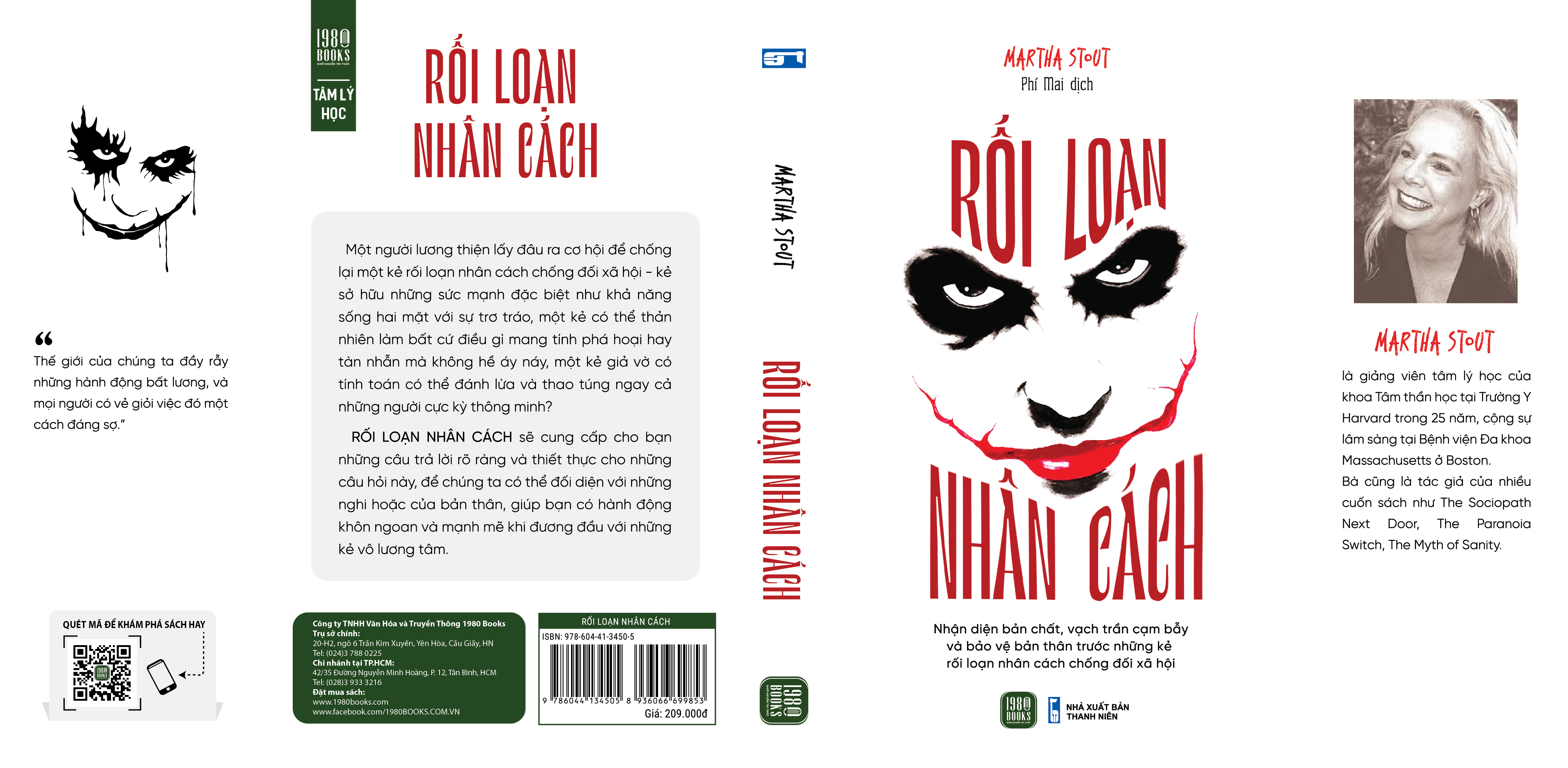 TÁC GIẢ: Martha Stout Ph.D. Dịch giả: Phí Mai THÔNG TIN XUẤT BẢN: Giá bìa: 209.000 Kích thước: 13x20,5 Số trang: 408 Mã EAN: 8 936066699853 NXB liên kết: NXB Thanh Niên Sách do Công ty TNHH Văn hóa và Truyền thông 1980 BOOKS ấn hành quý II/2024.   RỐI LOẠN NHÂN CÁCH Để hạ gục một kẻ rối loạn nhân cách chống đối xã hội, bạn phải hiểu bản chất của “kẻ săn người”. Cuốn sách Rối loạn nhân cách sẽ giúp bạn nhận diện bản chất, vạch trần cạm bẫy và có hành động khôn ngoan khi đương đầu với những kẻ thao túng vô lương tâm. Bên cạnh đó, cuốn sách hướng dẫn bạn các công cụ để bảo vệ bản thân trước những kẻ rối loạn nhân cách chống đối xã hội. Cuốn sách này thảo luận về tất cả các chủ đề bao gồm: •    Thực tế nghiệt ngã liên quan đến những đứa trẻ rối loạn nhân cách chống đối xã hội và cách đối phó với chúng. •    Những phương pháp cụ thể mà bạn có thể sử dụng để vượt qua một kẻ rối loạn nhân cách chống đối xã hội nhắm vào bạn tại nơi làm việc. •    Phải làm gì khi vợ/chồng của bạn trong cuộc chiến giành quyền nuôi con là một kẻ rối loạn nhân cách chống đối xã hội ? •    Kẻ rối loạn nhân cách chống đối xã hội lạm dụng (bao gồm cả tấn công trên mạng). •    Sự khác biệt giữa một người rối loạn nhân cách chống đối xã hội và một người ái kỷ.  Ngoài ra, cuốn sách còn giúp bạn nhận ra một sự thật rằng: Những kẻ rối loạn nhân cách chống đối xã hội không còn là hình ảnh trừu tượng trong một bản tin tức hay chủ đề của một bộ phim tài liệu gây sốc; mà trông hệt như những người bình thường khác, được ngụy trang khéo léo đến mức gần như không ai có thể nhận ra bản chất thực sự của họ trong nhiều năm hoặc thậm chí nhiều thập kỷ.    Về tác giả:  Martha Stout, Ph.D. Giảng viên tâm lý học của khoa Tâm thần học tại Trường Y Harvard trong 25 năm, cộng sự lâm sàng tại Bệnh viện Đa khoa Massachusetts ở Boston. Là tác giả của nhiều cuốn sách như The Sociopath Next Door, The Paranoia Switch, The Myth of Sanity.