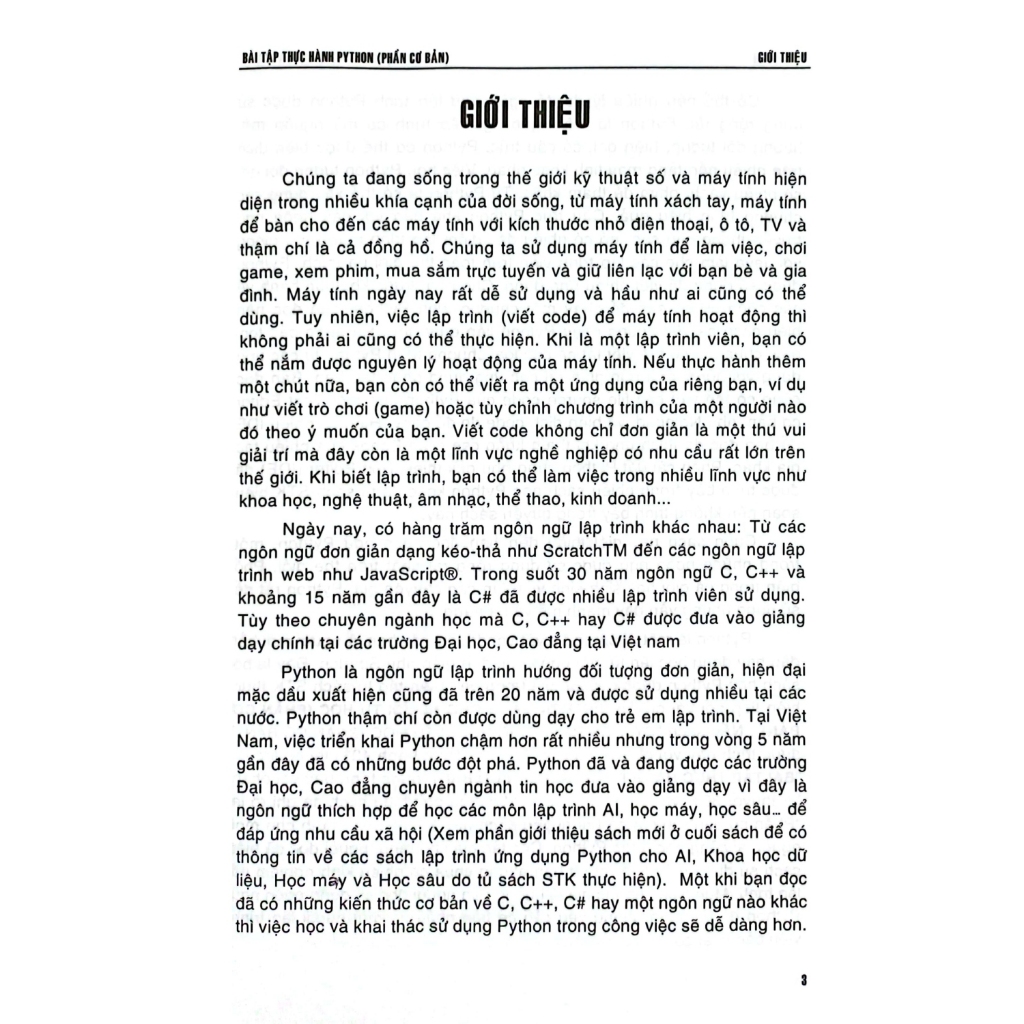Python Dành Cho Người Tự Học (Phần Cơ Bản) Chúng ta đang sống trong thế giới kỹ thuật số và máy tính hiện diện trong nhiều khía cạnh của đời sống, từ máy tính xách