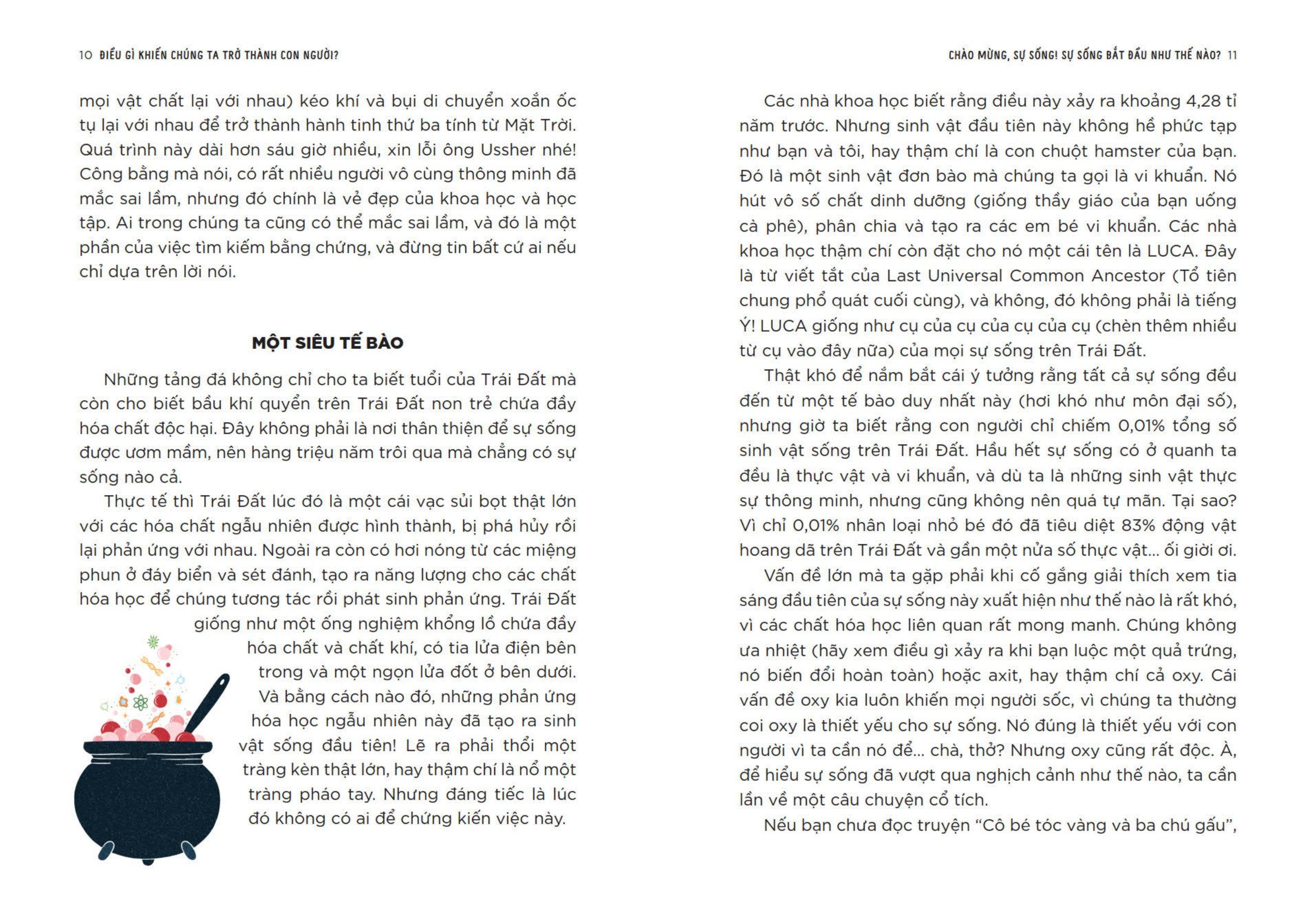 Mua tại TiktokĐiều Gì Khiến Chúng Ta Trở Thành Con Người? Nếu một người ngoài hành tinh đến Trái Đất, quan sát con người rồi so sánh với các dạng sống khác trên Trái Đất, ắt hẳn họ sẽ nhận ra những điều rất thú vị. Ví dụ, con người đi thẳng, mặc quần áo, nấu ăn, cười đùa và pha trò, chơi nhạc, chế tạo máy móc và suy nghĩ về những câu hỏi sâu sắc như: “Làm sao mà ta được như bây giờ?” Vậy điều gì khiến con người trở thành một loài khác biệt và độc nhất như vậy, và đâu là điểm chung giữa bạn với 7,75 tỉ người khác trên hành tinh này? Hành trình kì diệu với vô vàn bước ngoặt bất ngờ của sự sống đã được nhà miễn dịch học nổi tiếng Luke O’Neill hé lộ trong Điều Gì Khiến Chúng Ta Trở Thành Con Người? Cuốn sách sẽ dẫn bạn đọc tìm hiểu từ khởi nguyên của sự sống, khi tế bào đầu tiên xuất hiện trên Trái Đất khoảng 4 tỉ năm trước, cho đến thời điểm loài Homo sapiens sapiens, có nghĩa là “con người thông minh thông minh”, xuất hiện. Xem xét tất tần tật mọi điều xoay quay con người dưới góc nhìn khoa học, Điều Gì Khiến Chúng Ta Trở Thành Con Người? mang đến lời giải đáp đáng tin cậy và cụ thể về tình yêu, khiếu hài hước, khả năng cảm thụ âm nhạc, hay đủ mọi chuyện liên quan đến đồng hồ sinh học và nhịp sống của bạn, lí do bạn cảm thấy buồn ngủ hoặc đói, điều gì sẽ xảy ra khi bạn già đi, và cơ thể sẽ biến đổi thế nào sau khi bạn “nhắm mắt xuôi tay”… Hãy bắt đầu chuyến du hành khoa học khám phá sự sống qua mỗi trang sách ngay thôi nào!!