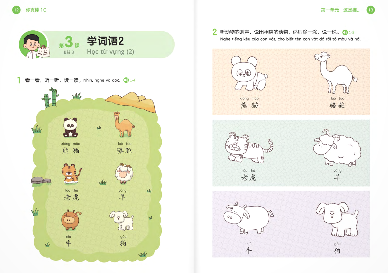 Với bộ sách này, học sinh có thể dễ dàng ghi nhớ từ vựng, nắm được cách viết chữ Hán, biết vận dụng kiến thức đã học khi giao tiếp trong thực tế và mở mang tầm nhìn về thế giới xung quanh.