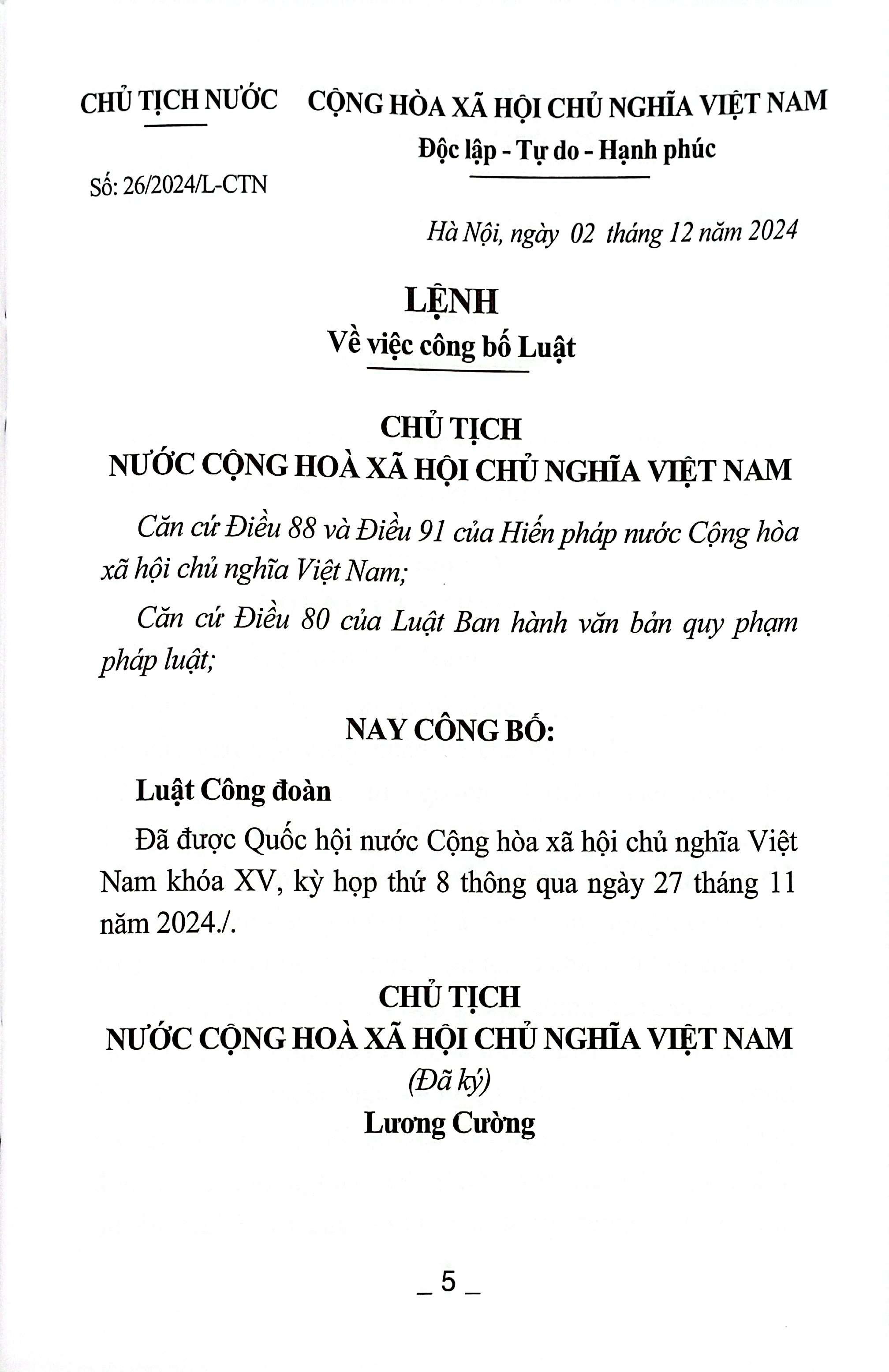 [Bản full- Đọc luật] Luật Công đoàn Việt Nam hiện hành - Luật số: 12/2012/QH13