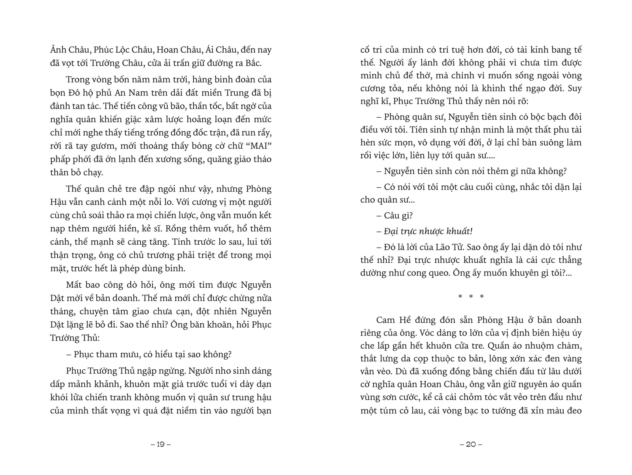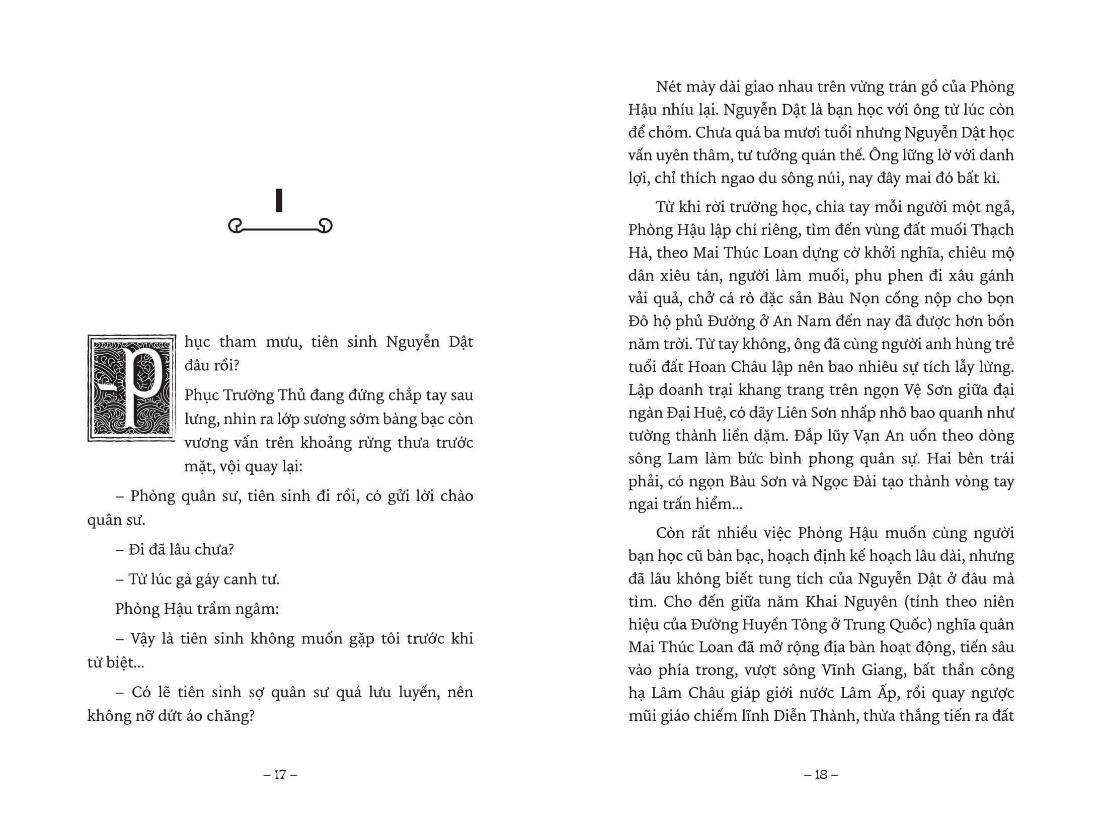 Vua Đen là một tiểu thuyết lịch sử về cuộc khởi nghĩa của Mai Thúc Loan chống lại giặc đô hộ nhà Đường. Nghĩa quân tham gia cùng ông là phu gánh vải, dân làm muối, dân đánh cá, người làm nông, phường thợ săn, có cả thầy giáo cả học trò, có cả những nghệ nhân hát ví, hát giặm… rất quật cường nhưng không thiếu lòng khoan hậu.