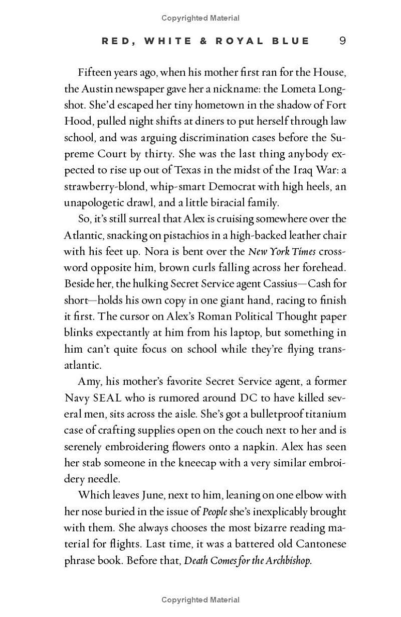 - Instant New York Times and USA Today bestseller * What happens when America's First Son falls in love with the Prince of Wales? Alex Claremont-Diaz is handsome, charismatic, a genius – pure millennial-marketing gold for the White House ever since his mother first became President of the United States. There’s only one problem. When the tabloids get hold of a photo involving an altercation between Alex and Prince Henry, U.S./British relations take a turn for the worse. Heads of family and state devise a plan for damage control: stage a truce. But what begins as a fake, rammable friendship grows deeper, and more dangerous, than either Alex or Henry could have imagined. Soon they are hurtling into a secret romance that could derail the presidential campaign and upend two nations. 'Red, White & Royal Blue is outrageously fun. It is romantic, sexy, witty, and thrilling. I loved every second.' - Taylor Jenkins Reid, New York Times bestselling author of Daisy Jones & The Six