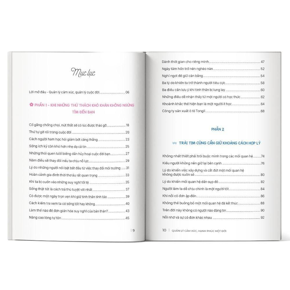 Quản lý cảm xúc, hạnh phúc một đời là cuốn cẩm nang giúp bạn hiểu rõ bản thân, kiểm soát cảm xúc và hướng tới một cuộc sống hạnh phúc, trọn vẹn hơn. Sách đi sâu vào những phương pháp thực tế để vượt qua thử thách, duy trì các mối quan hệ lành mạnh và nâng cao giá trị bản thân.