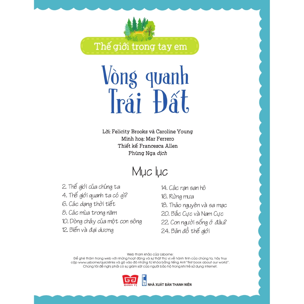Sách - Thế Giới Trong Tay Em - Vòng Quanh Trái ĐấtĐơn vị phát hành: Đinh TịMã sản phẩm: 8935212345804Tác giả: Lời: Felicity Brooks/Minh họa: Mar Ferrero/Thiết kế: Francesca AllenĐộ tuổi: 3-10 tuổiKí...