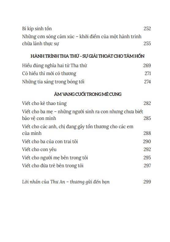 Bằng câu từ chân thật và đầy cảm xúc, cuốn sách dẫn dắt người đọc đi qua các chương đầy ám ảnh, cho đến hành trình đau đớn để tự m.ình phá vỡ “vết cắt xuyên thế hệ”. Đó là hành trình trở về với chính m.ình, với cảm xúc thật, giá trị thật và giấc mơ được sống đúng là m.ình.