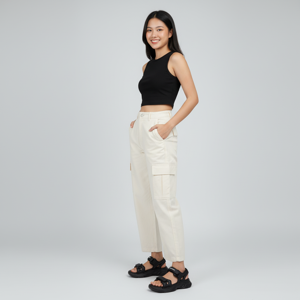 Kết hợp cùng quần ống rộng, áo croptop hoặc váy suông năng động để tạo phong cách “Hunter girl” đầy cá tính.
