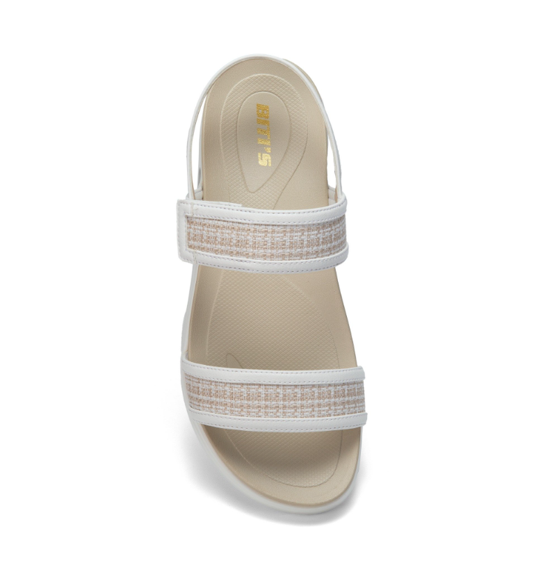 Sandal nữ thời trang – Thanh lịch & Êm ái cho mọi bước chân - Thiết kế: • Quai ngang kép bản to, phối vải dệt sắc trắng be nhẹ nhàng, tạo điểm nhấn thanh