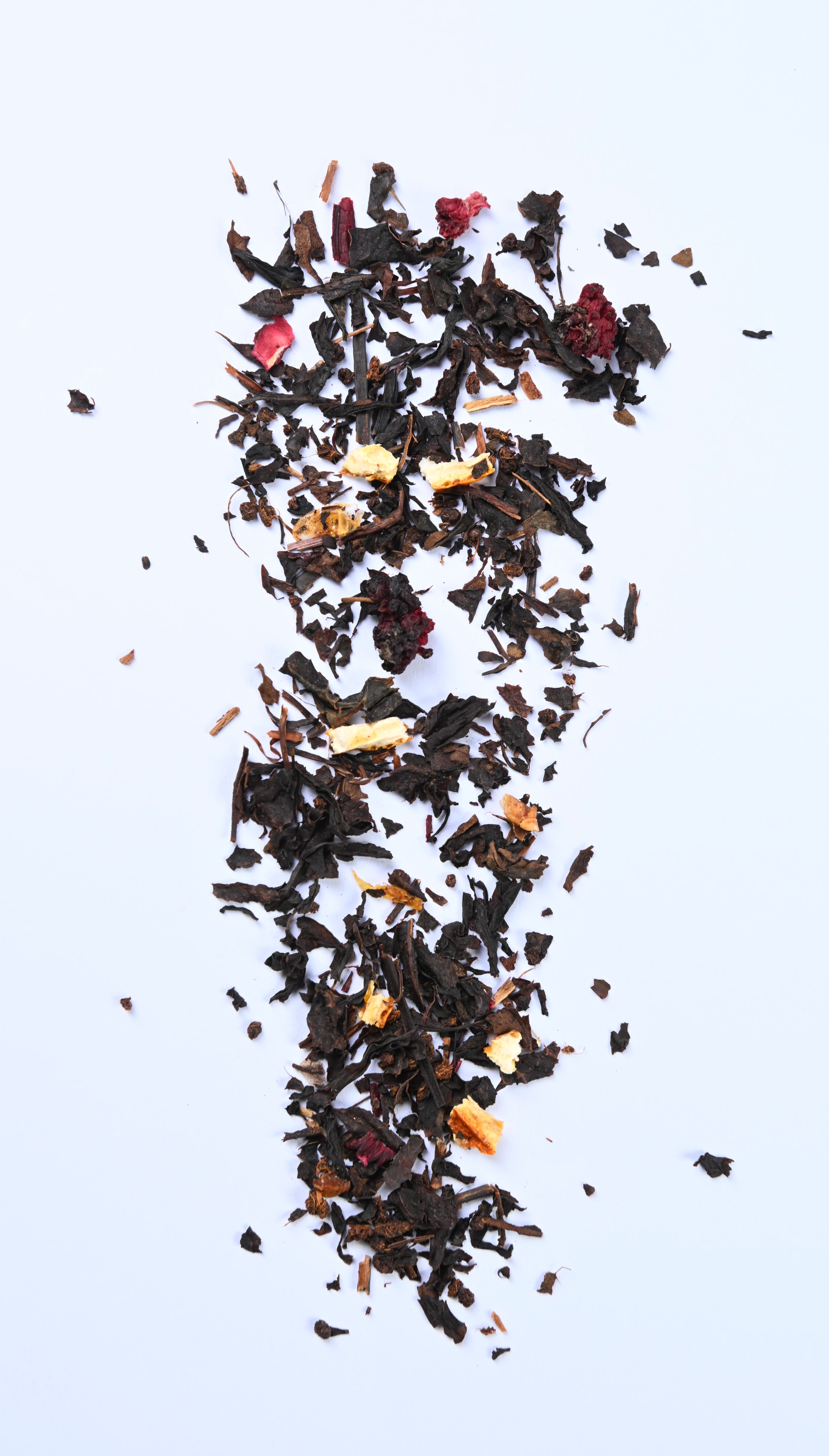 Trà đen hảo hạng vị cam, quế. Trà được trồng và thu hoạch trên vùng thổ nhưỡng và khí hậu tuyệt vời ở Lâm Đồng phối trộn tinh tế với cam vàng sấy khô và