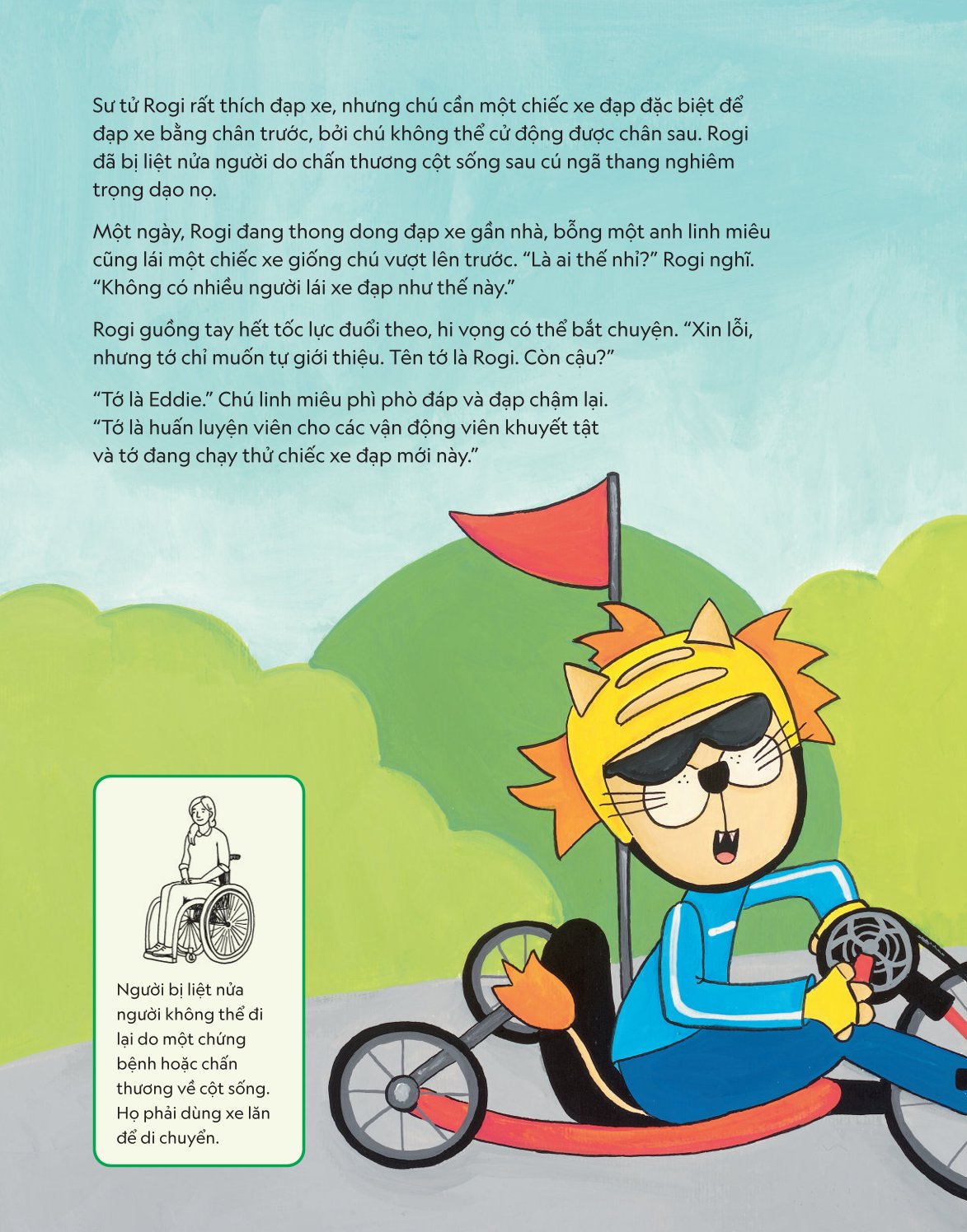 Mua tại TiktokChuyện về sư tử Rogi là câu chuyện về một chú sư tử phi thường. Bộ sách tranh phác họa những khó khăn trong cuộc sống mà người khuyết tật thường gặp phải và nâng cao nhận thức cộng đồng về việc tháo gỡ những vấn đề này.