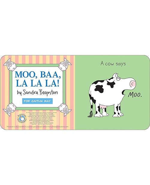 T_Moo, Baa, La La La! This raucous story about animals and the sounds they make, including three pigs who say “LA LA LA!” is a read-aloud favorite. Sandra Boynton’s wildly popular, Moo, Baa, La La