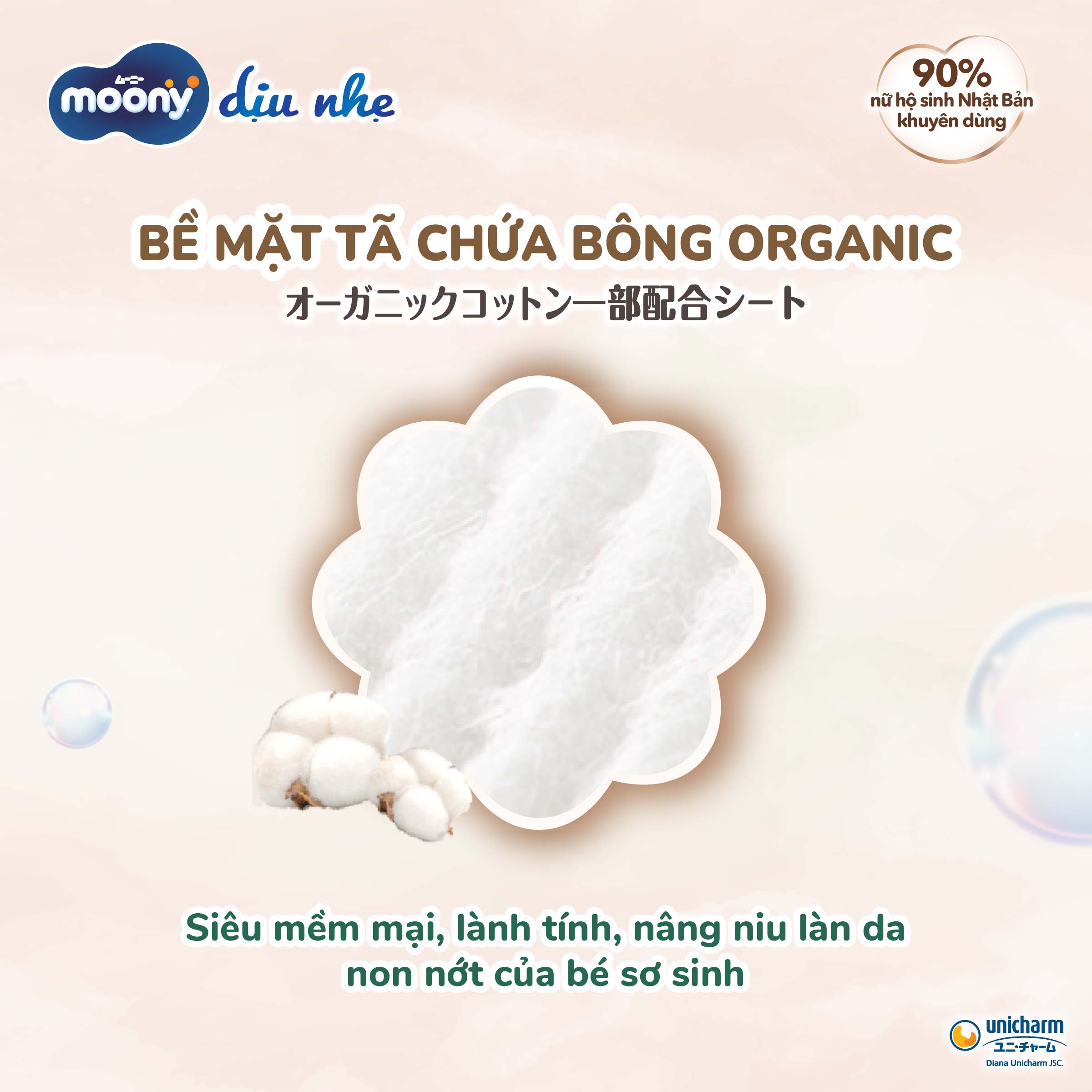 Moony hiểu rằng làn da bé sơ sinh rất mỏng manh (chỉ bằng 1/3 so với da người lớn), nên rất dễ bị kích ứng. Chính vì vậy, tã Moony Dịu Nhẹ được làm từ các nguyên vật liệu an toàn, siêu mềm mại, giúp nâng niu làn da non nớt của bé yêu.