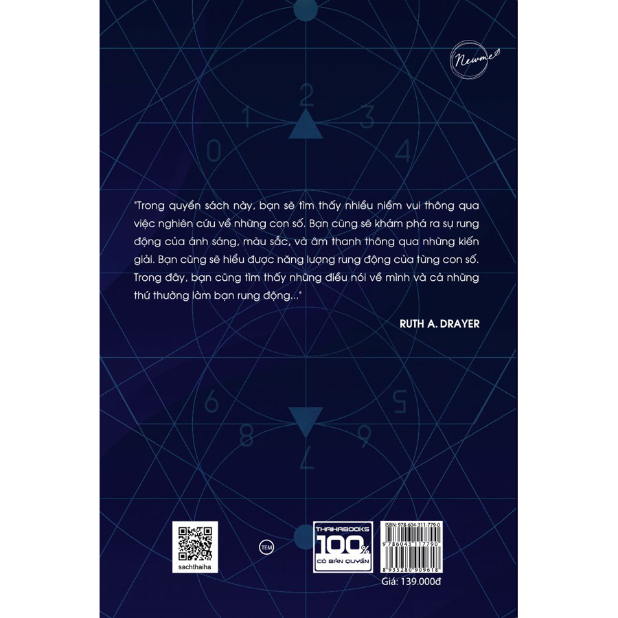 - Phương pháp đọc và luận giải: là cách thức tác giả đề xuất để diễn giải các thông tin được mã hóa trong Biểu đồ Thần số học của một cá nhân. Tuy nhiên, khi đã thấu đạt, tùy vào loại Biểu đồ số, mục đích ứng dụng, quan điểm và trải nghiệm sống riêng mà chúng ta có thể đưa ra các phương pháp luận khác. Phương pháp luận giải một Biểu đồ Thần số học được tác giả hướng dẫn cụ thể từng bước ở chương 7 của quyển sách này. Thông tin tác giả: Ruth A. Drayer đã theo đuổi nghiên cứu về số học trong hơn ba mươi năm và đã dạy cho hàng nghìn người khác phương pháp đọc số trực quan của mình. Thông qua hành nghề riêng của mình. Drayer tư vấn cho khách hàng từ khắp nơi trên thế giới. Là một diễn giả rất được công chúng săn đón, cô từng là người điều hành tại các hội nghị và hội thảo về chủ đề này trên khắp Bắc Mỹ, cô cũng xuất hiện với tư cách là một chuyên gia khách mời trên nhiều chương trình truyền hình và đài phát thanh. Công ty Cổ phần Sách Thái Hà trân trọng giới thiệu!