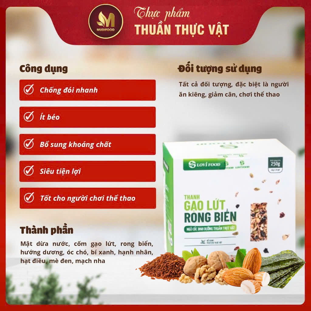 ✨Thanh Gạo Lứt Rong Biển Lovifood 250g (10 gói x 25g) - Cung Cấp Vitamin và Khoáng Chất, Giúp Cân Đối Dinh Dưỡng, Tốt Cho Sức Khỏe, Bổ Sung Chất Đạm và Chất Xơ, Tốt Cho Tim Mạch, Huyết Áp - Người Ăn Kiêng, Ăn chay, Người Tập Gym, Yoga, Giảm Cân, Tiểu Đường