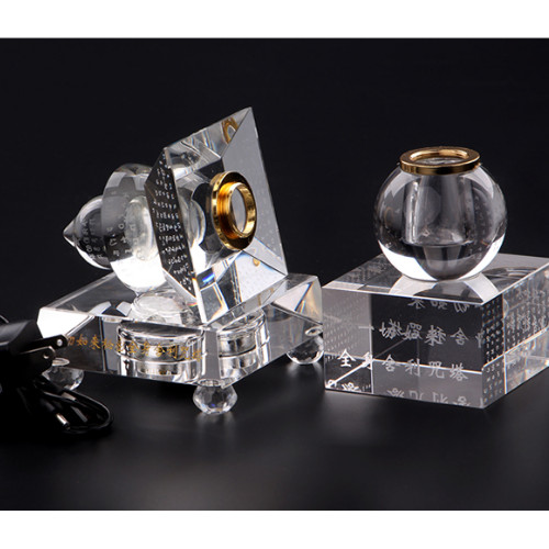 Bảo tháp xá lợi Phật pha lê khắc chú bảo khiết ấn có đế đèn led