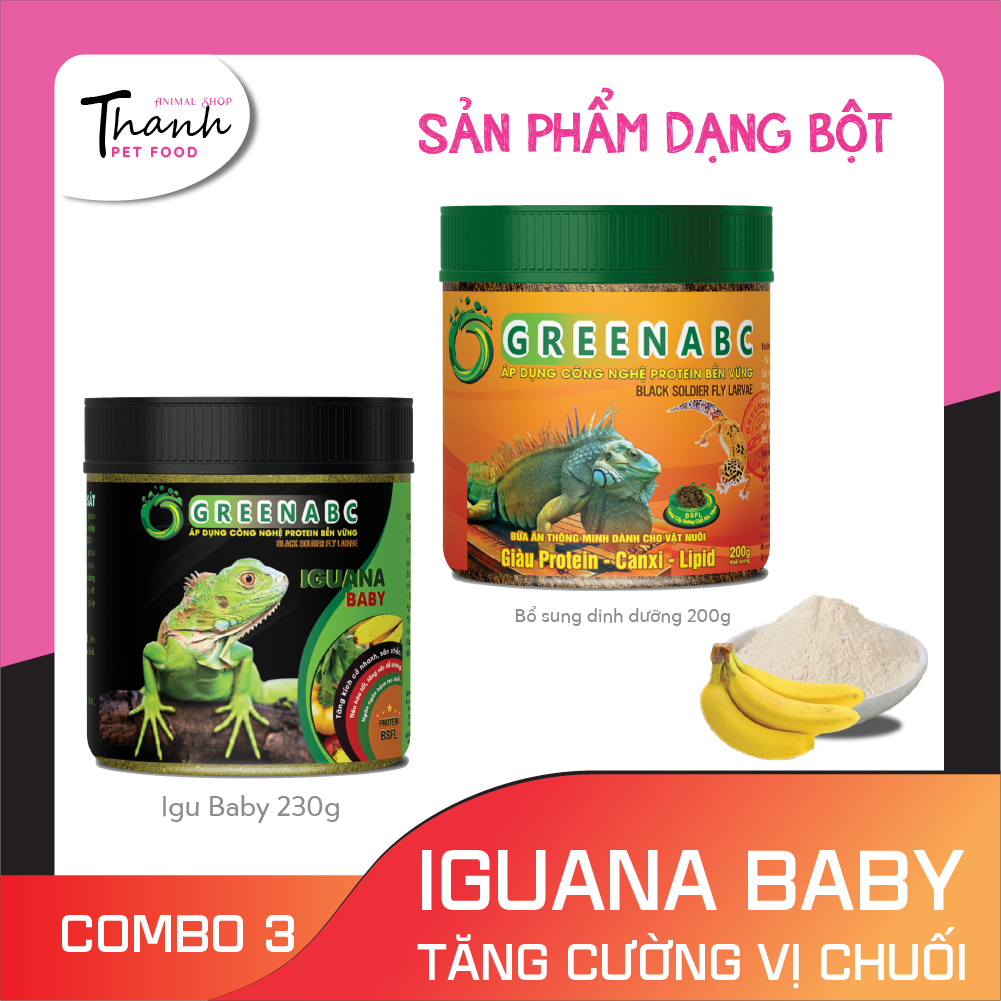 GREENABC - THỨC ĂN IGUANA BABY VỊ CHUỐI - Rồng Nam Mỹ Baby vị Chuối từ mới nở đến 9x. GREENABC là thức ăn cao cấp dành cho Iguana Baby - Rồng Nam Mỹ Baby