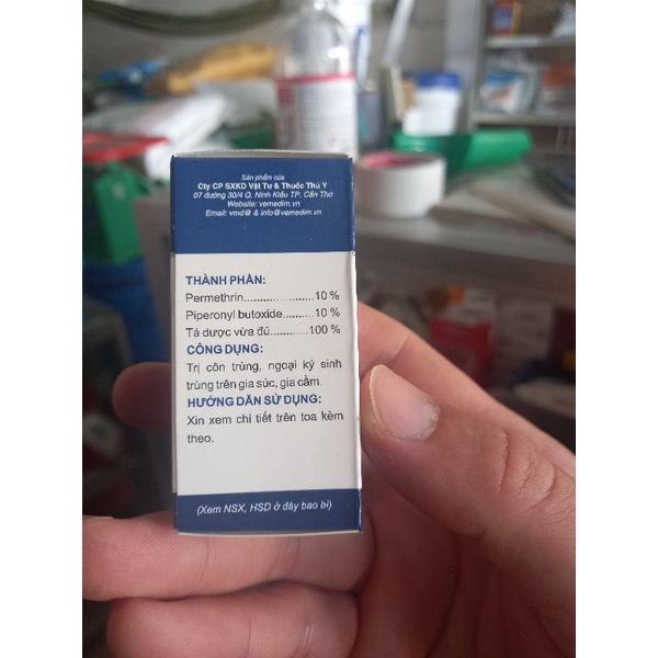 - Phân loại: Có mùi - Thành phần: Permethrin 55% W/v, Piperronyl 5% W/V - Dạng lỏng - Đóng chai: 500 Lít (pha được hơn 50 lít nước) - Cách pha: 10ml/1 lít nước -