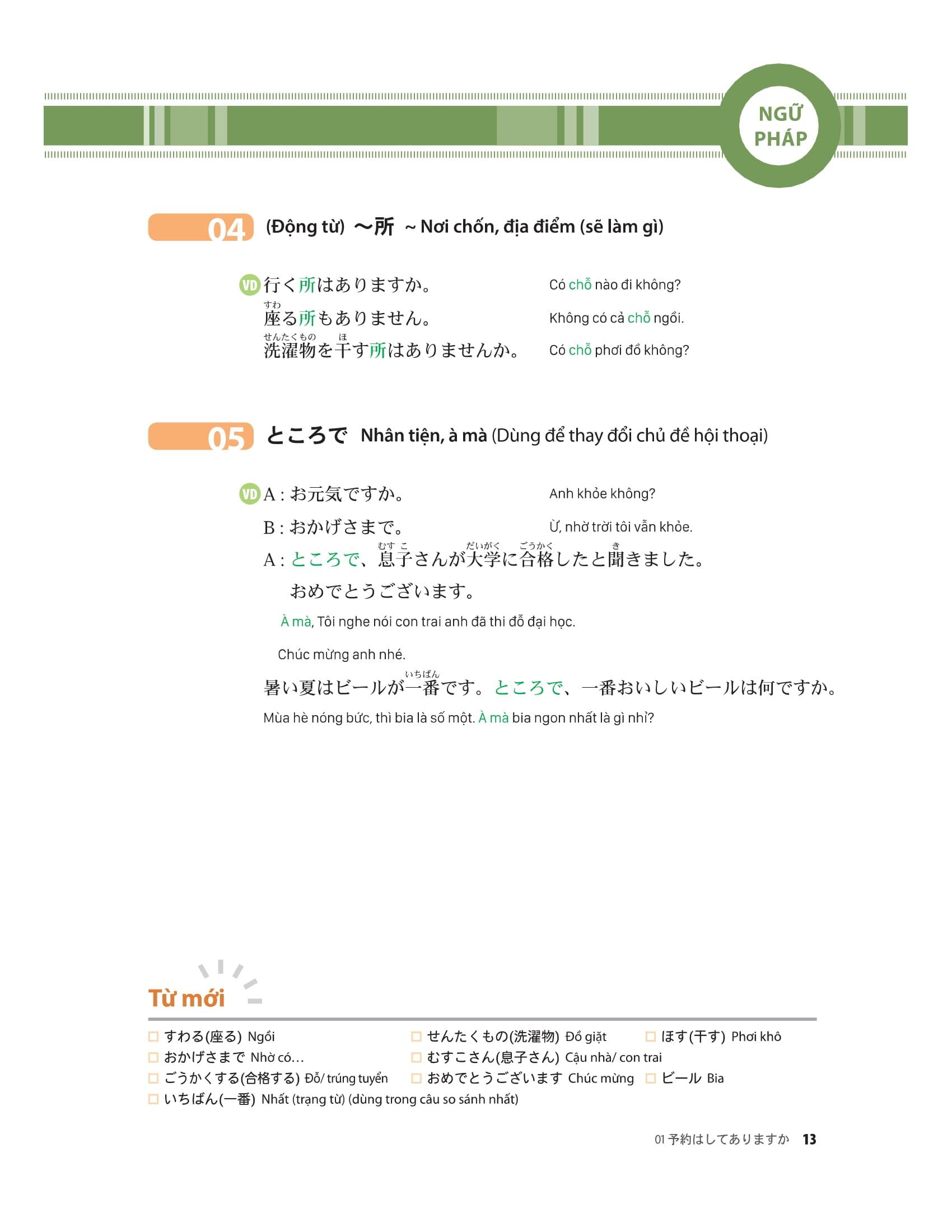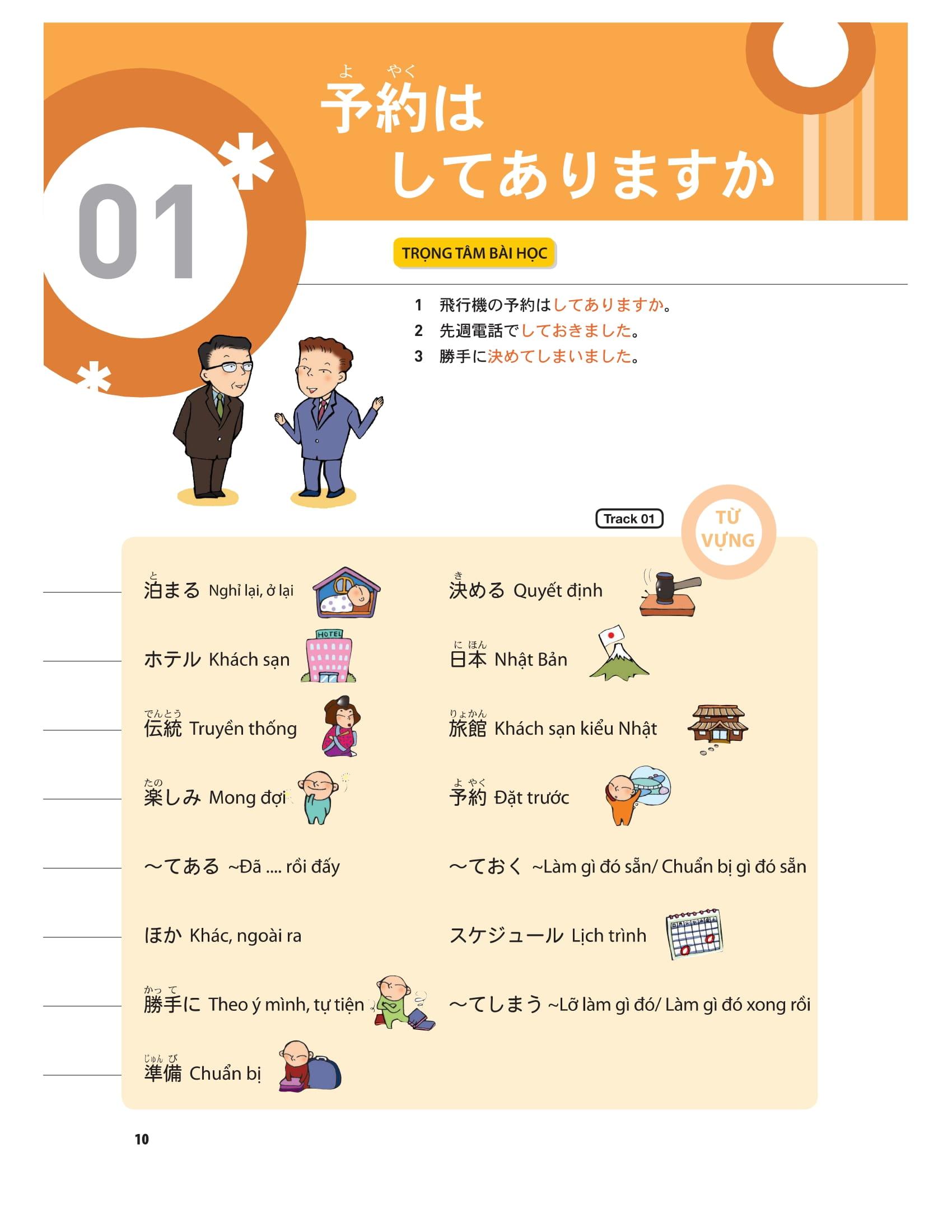 – Cuốn sách gồm tổng cộng 18 bài, mỗi bài bao gồm cả nội dung về hội thoại và ngữ pháp cơ bản.