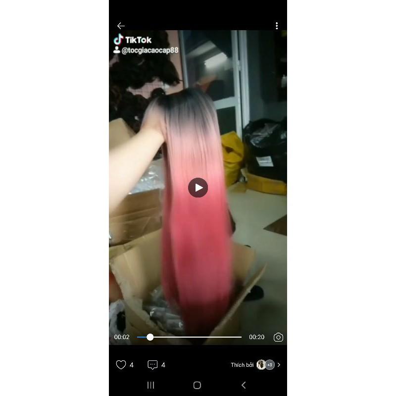✨Tóc giả cao cấp ombre hồng, tặng lưới chùm tóc