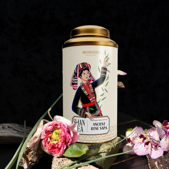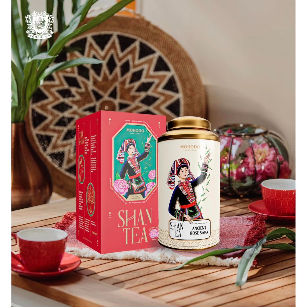 - Trà Mohodo không sử dụng chất bảo quản, không sử dụng thêm hương liệu. ĐẶC ĐIỂM NỔI BẬT Trà Shan Tuyết phát triển và sinh trưởng tốt ở độ cao trên 1500m so với mực nước biển chủ yếu phân bố ở Tà Xùa - Sơn La, Tây Côn Lĩnh - Hà Giang và Suối Giàng - Yên Bái và một số vùng núi cao Tây Bắc khác. Cây trà phát triển tự nhiên khỏe mạnh rất ít sâu bệnh và không có bàn tay chăm sóc của con người Trà shan ướp hồng cổ-80g một tôm một lá ướp hoa hồng cổ Sapa. Hồng trà Shan được lên men theo phương pháp tự nhiên và ướp với hồng cổ trong chum sành truyền thống. Vì được chế biến từ những búp trà Shan Tuyết cổ thụ thượng hạng, nên Hồng trà Shan Tuyết ưu việt hơn các loại hồng trà thông thường về cả phẩm chất, chất lượng, màu sắc và hương vị. Dòng trà Trà Shan Tea sẽ rất phù với người coi trọng hương vị tự nhiên thuần khiết. HƯƠNG VỊ: Trà shan ướp hồng cổ có hương trà thơm tự nhiên, như hoa cỏ chín đượm, vị trà: Vị sâu, hậu ngọt, dư vị lâu