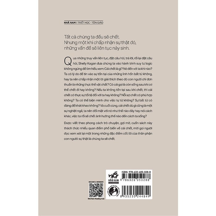 Tất cả chúng ta đều sẽ chết. Nhưng một khi chấp nhận sự thật đó, những vấn đề sẽ liên tục nảy sinh. Qua những truy vấn liên tục, đặt câu hỏi, trả lời, rồi lại đặt câu hỏi, Shelly Kagan đưa chúng ta vào hành trình suy tư logic không ngừng để tìm hiểu xem: Cái chết là gì? Nó đến với ta khi nào? Ta có lý do để tin vào sự tồn tại của những linh hồn bất từ không, hay ta nên chấp nhận một lời giải thích theo đó con người chỉ đơn thuần là những thực thể vật chất? Có cái gọi là còn sống sau khi cơ thể chết đi hay không? Nếu ta không tồn tại sau khi chết, thì cái chết có thực sự tồi tệ đối với ta hay không? Nỗi sợ chết có phù hợp không? Ta có thể biện minh cho việc tự từ không? Sự bất từ có đáng để khát khao không? Và cuối cùng, cái chết dù gì cũng là một sự nghiệt ngã, ta nên đối mặt với nó như thế nào đây hay nói cách khác, việc ta rồi sẽ chết ảnh hưởng thế nào đến cách ta sống? Được viết theo phong cách trò chuyện, gợi mở, cuốn sách này thách thức nhiều quan điểm phổ biến về cái chết, mời gọi người đọc xem xét lại một trong những đặc điểm cốt lõi của thân phận con người: sự thật là chúng ta sẽ chết.
