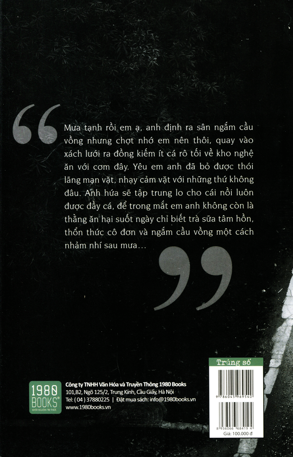 THÔNG TIN XUẤT BẢN: - Công ty phát hành: Nhã Nam - Tác giả: Trần Nghiên Nhất - Dịch giả: Không Sơn - Nhà xuất bản: Hội Nhà Văn - Kích thước: 14 x 20.5cm