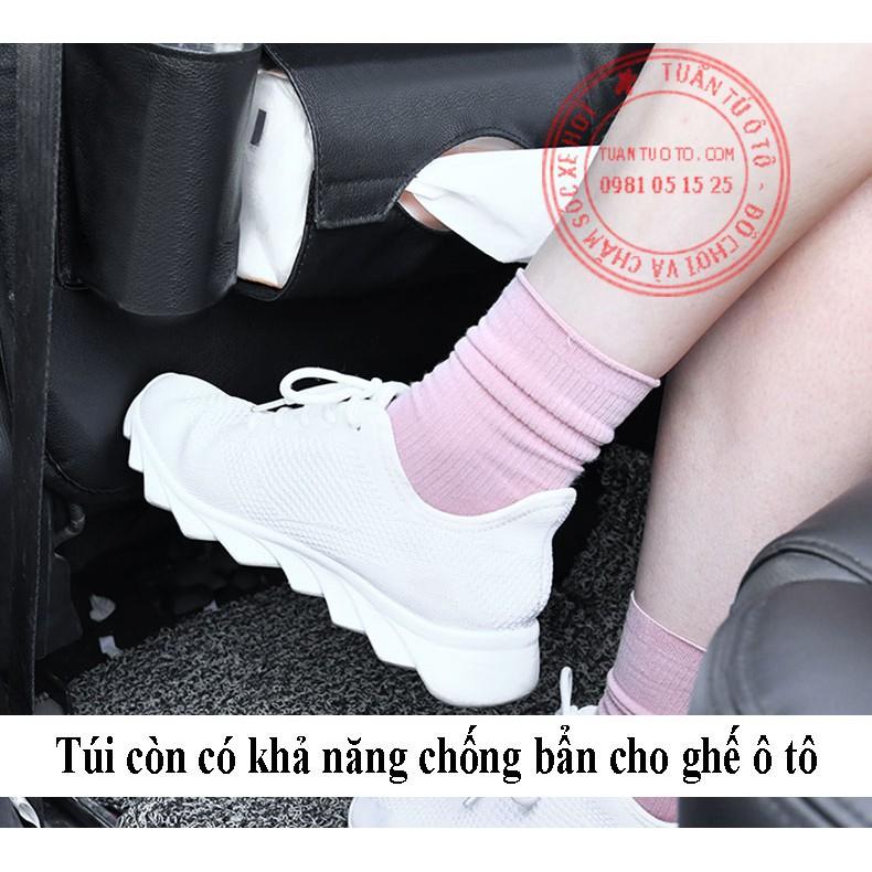 - Túi để đồ này không chỉ được thiết kế để bỏ đồ dùng, mà nó còn làm một nhiệm vụ khác cũng không kém phần quan trọng. Nhiệm vụ đó là chống lại khả năng gây bẩn hay trầy xước da ghế do những người ngồi ở hàng ghế sau gác chân lên ghế xe.
